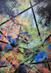 創作從不滯於僵硬的框架。在理性的結構之上,更追求肆意呈現的自由。色彩與質地刷痕自然的流淌,形成充滿生命力的有機線條和質地。在有計畫的理性與自然感受的感性之間的構成張力,如同建築般精確的結構,又有如自然界般瞬息萬變的生機。這種「設計思維繪畫」的跨界融合,能夠跳脫單一領域的限制,將視覺傳達的效率與藝術表現的深度結合。致力於讓觀者不僅看到一幅畫,更能感受到一次經過精心設計、充滿視覺衝擊力與內在邏輯的感受體驗。每一件作品都是一個經過刻意編排的場景,是對幾何美學與有機生命的持續探索與呈現。
