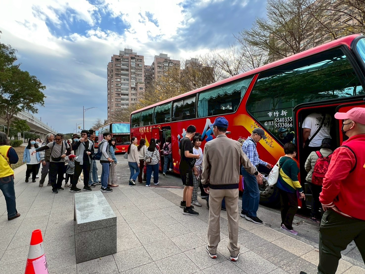 燈會期間,交通局於假日規劃「市府線」與「松竹線」兩條免費接駁路線,並依現場人潮即時調整班次,採「坐滿即發車」方式提升接駁效率。許多搭乘民眾表示候車時間短,並可透過捷運、台鐵及高鐵轉乘順利抵達會場,整體接駁服務便利順暢。