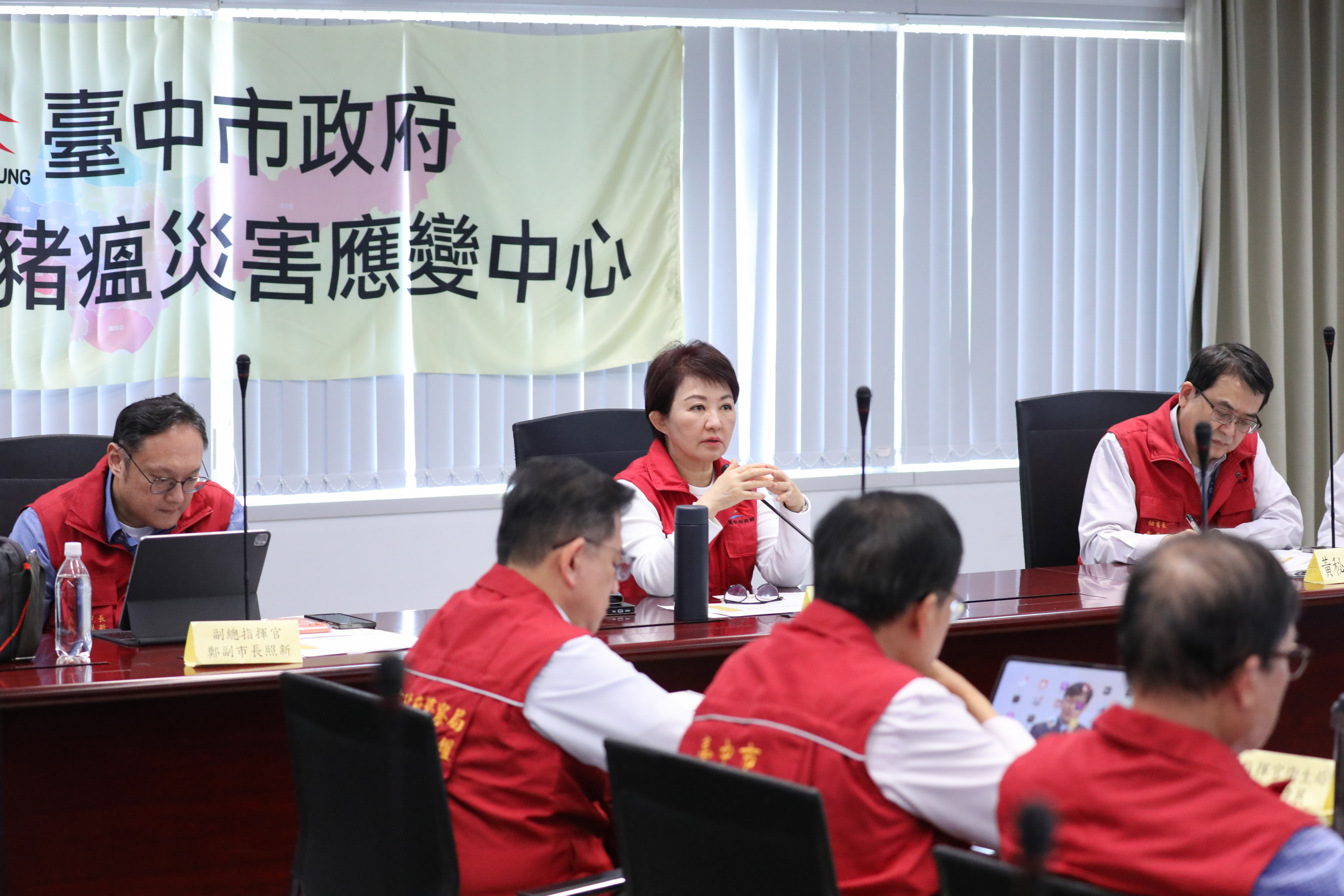 台中市政府今日召開第65次防範非洲豬瘟災害應變中心擴大會議,市長盧秀燕表示,市府將持續強化非洲豬瘟防疫工作,透過跨局處合作與科技管理機制,全面落實廚餘再利用管理、肉品稽查及養豬場監測,兼顧防疫安全與資源循環利用,守護市民健康與產業安全。