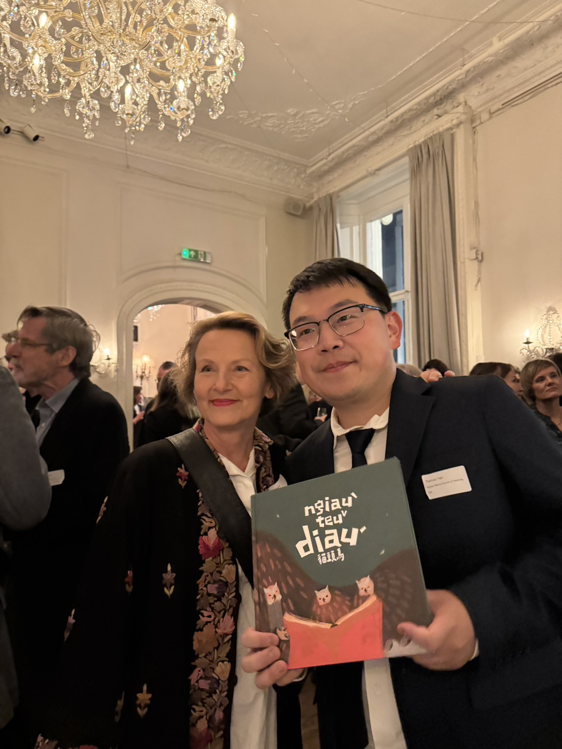 中市客委會主委江俊龍表示,《貓頭鳥》繪本推出後受到文化界與教育界廣泛關注,不僅成為學童閱讀與學習的重要媒材,也透過親子共讀讓更多家庭認識客家文化。此次榮獲德國金獎,客委會特別派員前往英國倫敦出席頒獎典禮,展現對國際繪本出版交流及文化推廣的重視。本屆獲獎作品還包括英國、德國、瑞士、比利時等國家,台灣為唯一獲獎的亞洲國家,成果難得。