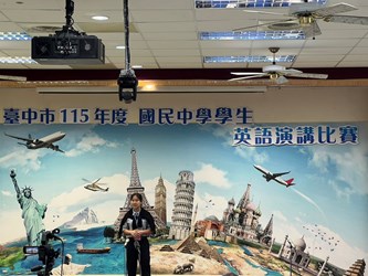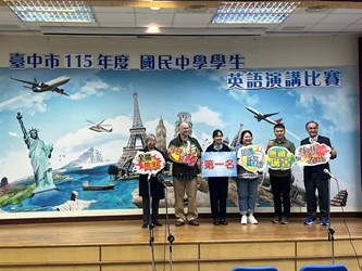 台中市政府教育局今(10)日於市立光復國民中小學舉辦115年度中市國中學生英語演講比賽。此次比賽分為4組進行,由台中市公私立國中各派1名學生代表參賽,共計89位學生同場競技。賽程分上下午場次,透過分組競賽的模式,不僅為學生搭建英語學習成果的舞台,更促成各校師生間的觀摩與深度交流。