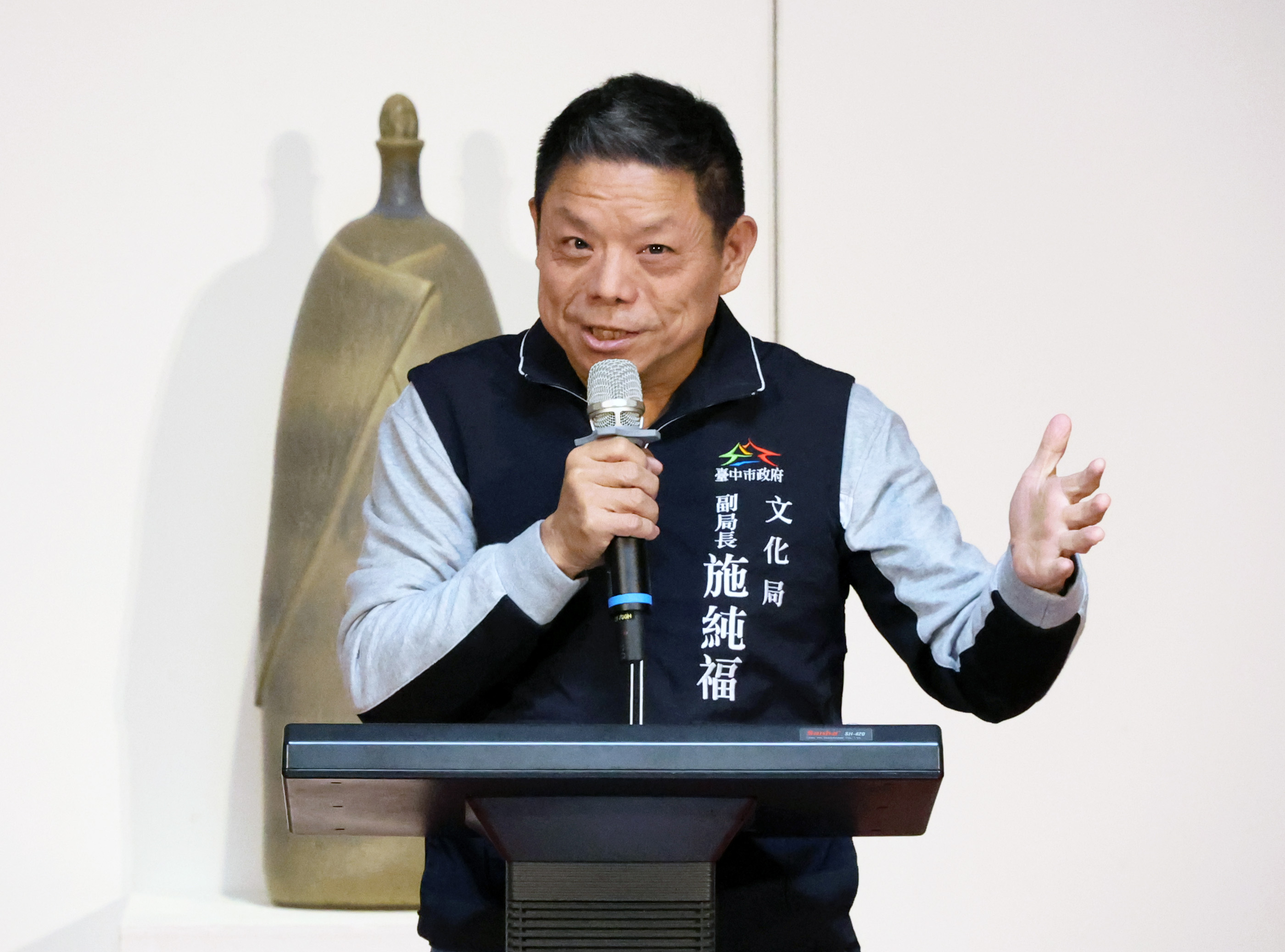 台中市政府文化局副局長施純福致詞時表示,蔡榮祐自1977年於霧峰創立廣達藝苑以來,持續凝聚陶藝同好,並於1984年成立「陶癡雅集」,帶動中部地區學習陶藝的風潮。他以藝術為信仰,將生活、旅行、自然與人文經驗轉化為陶藝創作的養分,從茶器、花器到造形瓶,甚至以陶造石,每件器物皆承載藝術家的生命情感與精神內涵。多次受邀於國立臺灣美術館及日本京都文化博物館展出,並榮獲臺灣工藝中心「國家工藝成就獎」(2011)與新北市立鶯歌陶瓷博物館「陶藝成就獎」(2013),其藝術地位可謂國寶級。