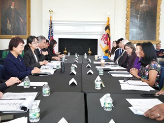 盧市長訪團拜會州府,包含馬里蘭州副州長米勒(Aruna Miller)、州務卿李鳳遷(Susan C. Lee)、勞工廳長吳俞蓉(Portia Wu)及商務廳副廳長里卡多·班(Ricardo Benn)等一行10多人熱情接待,雙方互動熱絡,其中勞工廳長吳俞蓉(Portia Wu)雙親來自彰化鹿港,讓這場拜會增添不少親切感。