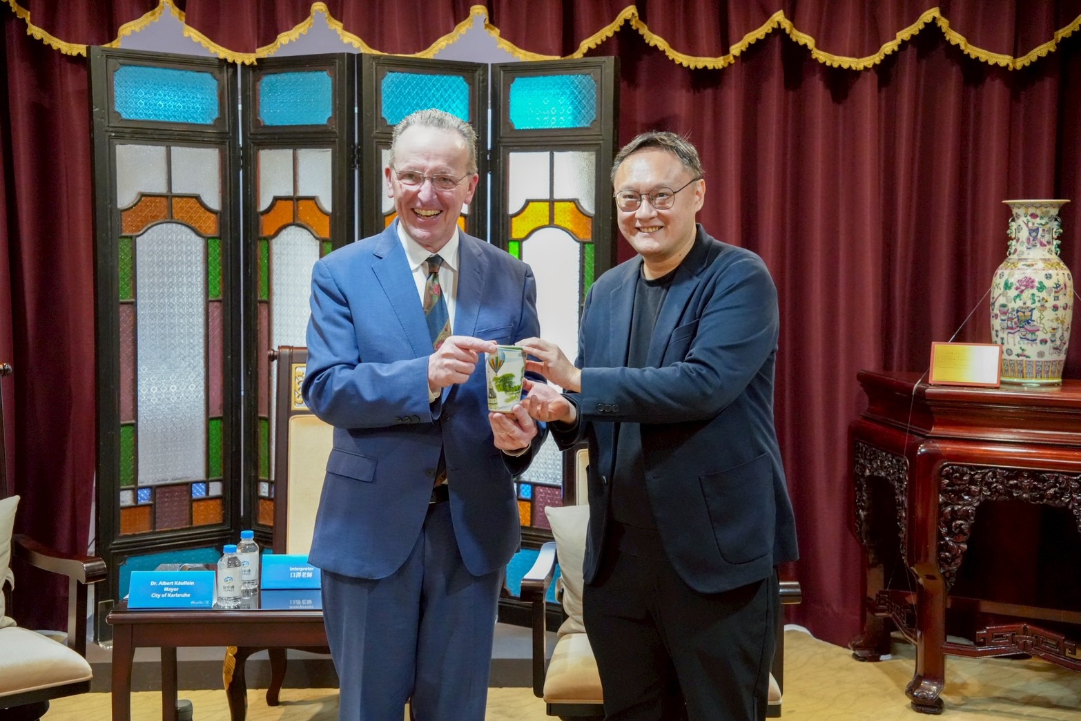 德國卡斯魯爾市(Karlsruhe)副市長考夫藍博士(Dr. Albert Kauflein)繼去年3月拜會台中市長盧秀燕後,今(20)日再度率團蒞臨台中市政府,由副市長鄭照新接待。鄭副市長表示,考夫藍副市長連續兩年到訪,象徵雙方關係已由理念交流,進一步邁向智慧城市、數位治理及人工智慧(AI)應用等領域的實質合作,展現攜手打造宜居智慧城市的共同願景。