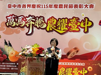 為感謝過去一年來不畏辛勞、耕耘奉獻的傑出農民以及農界有功人員,由台中市政府農業局指導、中市農會主辦的「台中市各界慶祝115年度農民節表彰大會」,於今(20)日上午假台中市政府新市政大樓四樓集會堂盛大展開,由副市長賴淑惠蒞臨頒發獎項,除了共同分享豐收的喜悅,更感謝相關人員對於中市農業蓬勃發展所做出的卓越貢獻。此次農民節大會共表揚238位受獎人,肯定其在農業發展上的傑出貢獻,並感謝對台中農業繁榮所付出的努力。