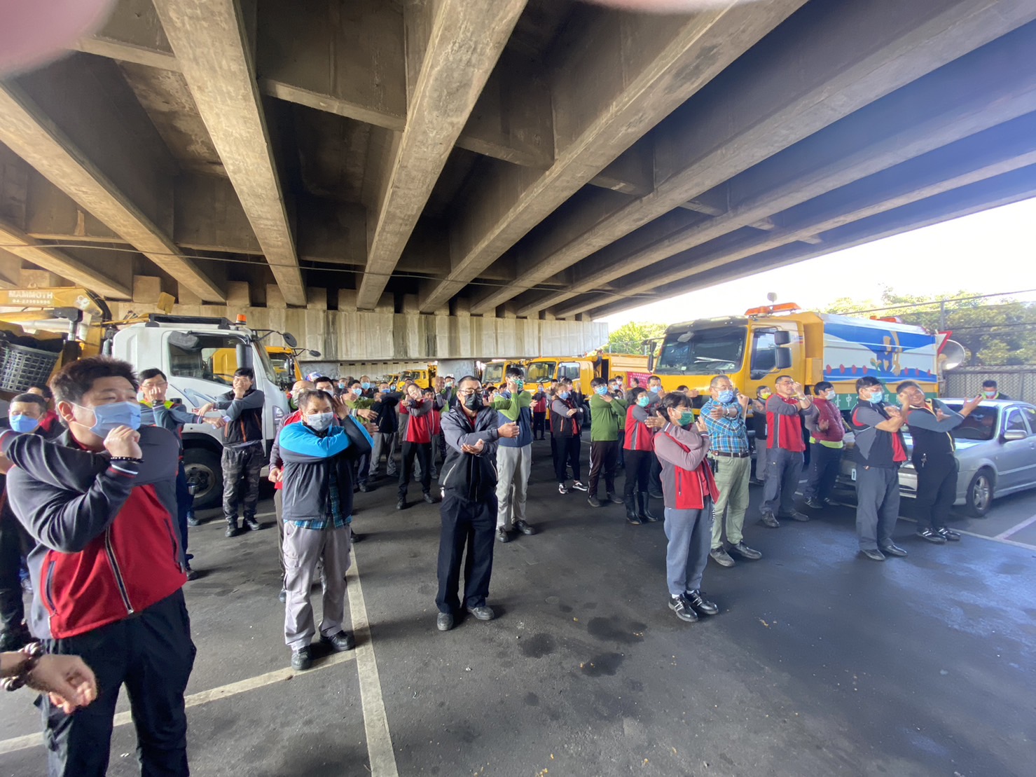 台中市政府環保局持續推動「清潔隊健康管理計畫」,結合健康促進活動與自主健康管理機制,透過勤前健康操、飲食熱量管理及每日自主量測體重等措施,協助清潔隊員養成健康自覺與管理習慣,隨時掌握身體狀況,守護第一線人員健康。