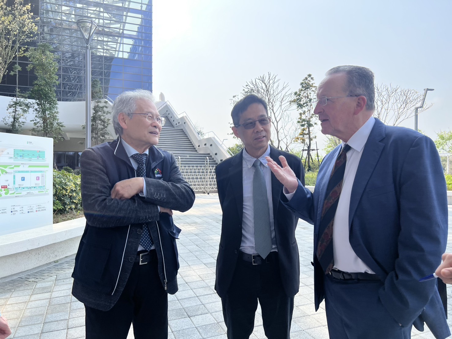 在交通配套方面,副市長考夫藍博士表示,卡斯魯爾展覽中心可透過電車及巴士等大眾運輸抵達,展會期間亦提供自中央車站直達展館的接駁服務;張局長則說明,水湳經貿園區交通條件持續完善,未來規劃中的捷運橘線也將行經會展中心。雙方均認為,完善便捷的交通系統,是提升場館效益與活動量能的重要基礎。