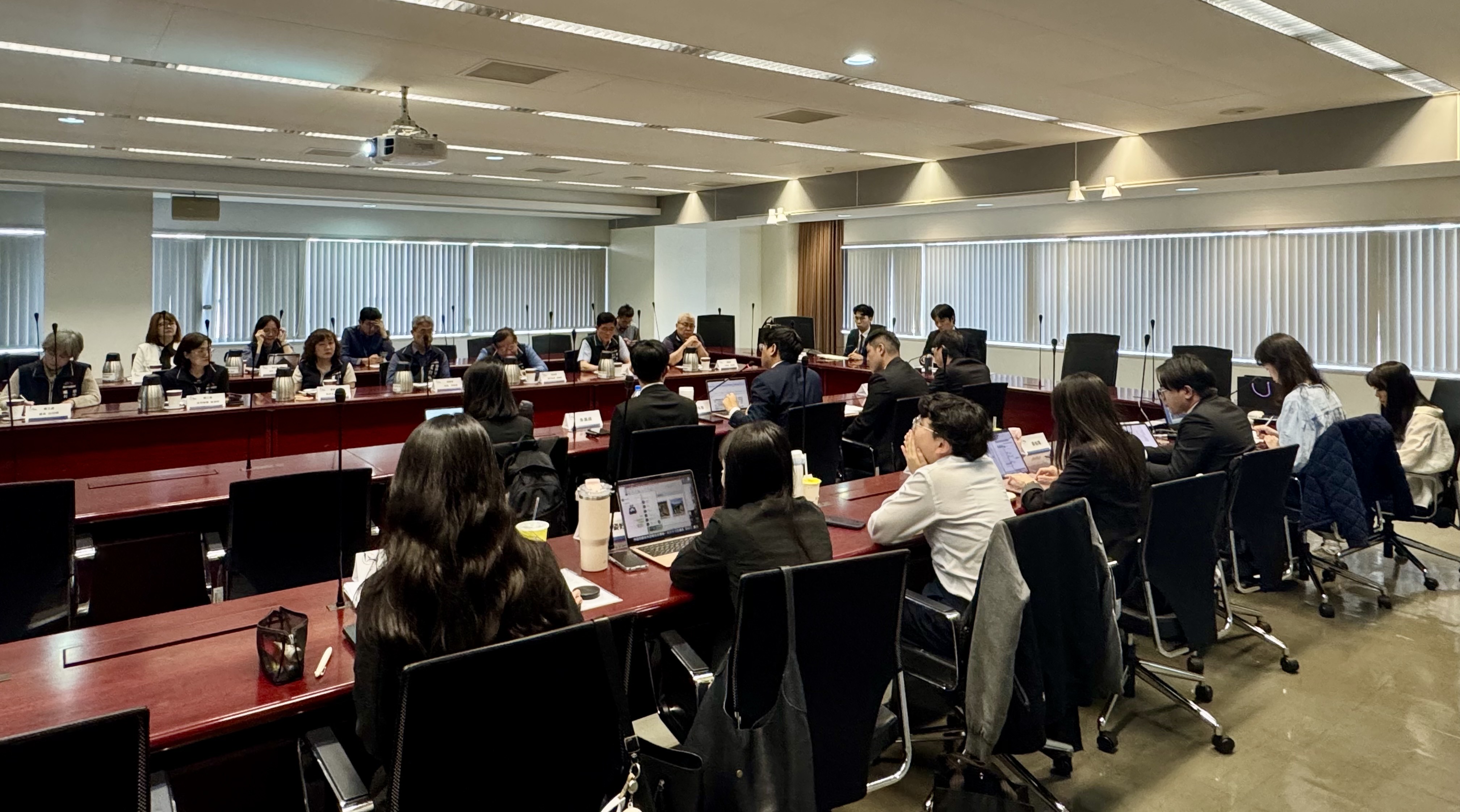 座談會中,10位學員依序進行心得報告,透過生動簡報,回顧兩週來的見聞與體會。學員分享,曾隨同環保局運用空拍機與監視設備查緝非法棄置廢棄物案件,亦深入工地現場,和勞工局同仁一同檢視電梯井防護及安全通道設置,實地了解職業安全的重要性。此外,也前往食品安全處認識食安GIS專區的智慧管理機制,並於區公所觀摩調解業務,深刻體會調解制度的核心價值。
