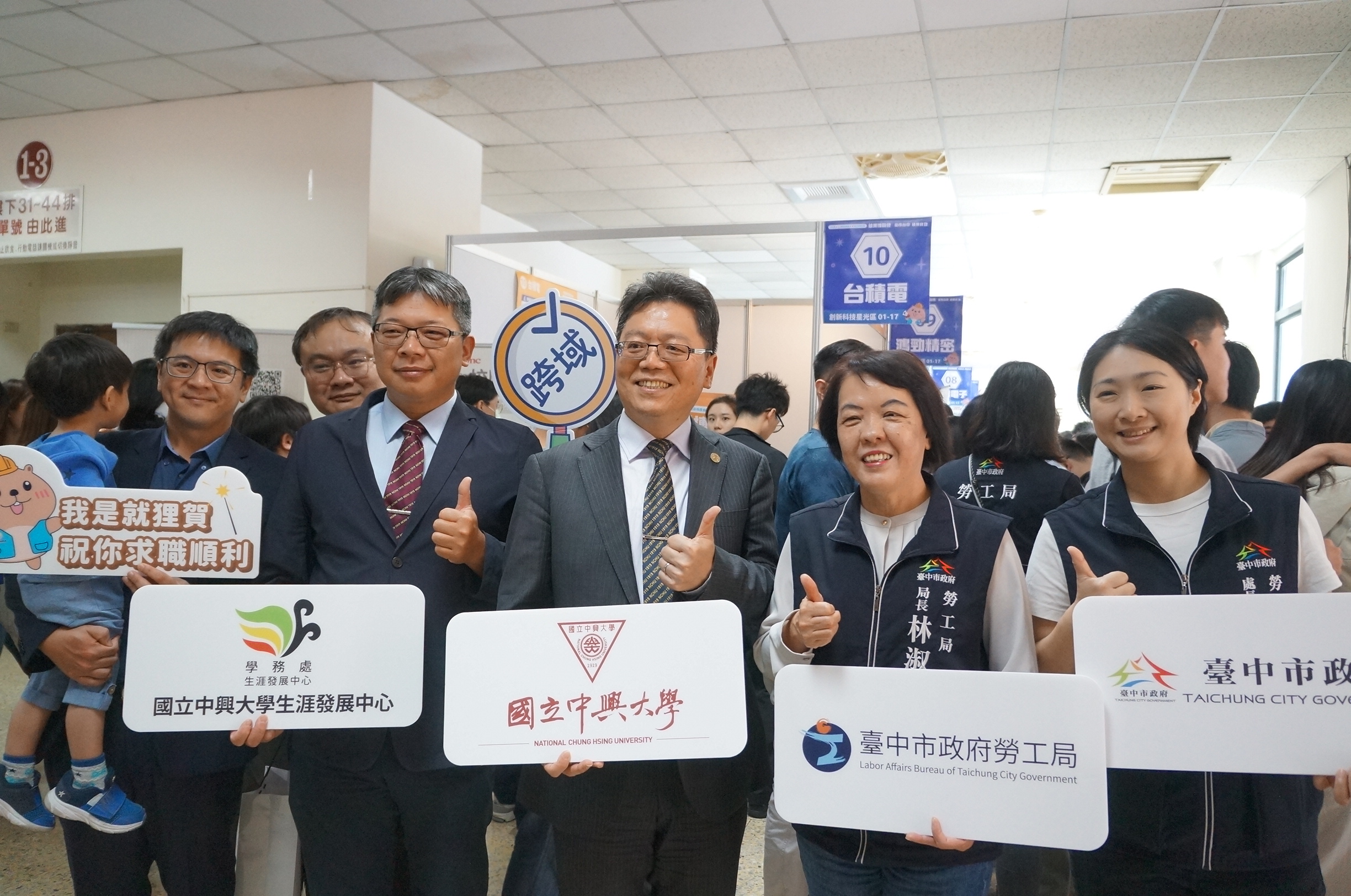 中興大學副校長陳全木提到,台中市政府跟中興大學已經連續23年合作舉辦就業博覽會,攜手為中部地區就業力及產業發展競爭力共同努力。台中是一座宜居城市,今日徵才活動邀集近百家企業一同參與,包括台積電、美光、鴻海、大立光、矽品及統一等大企業,期待青年朋友們善用資源、在地就業,讓中部地區生產動能持續發光發熱。