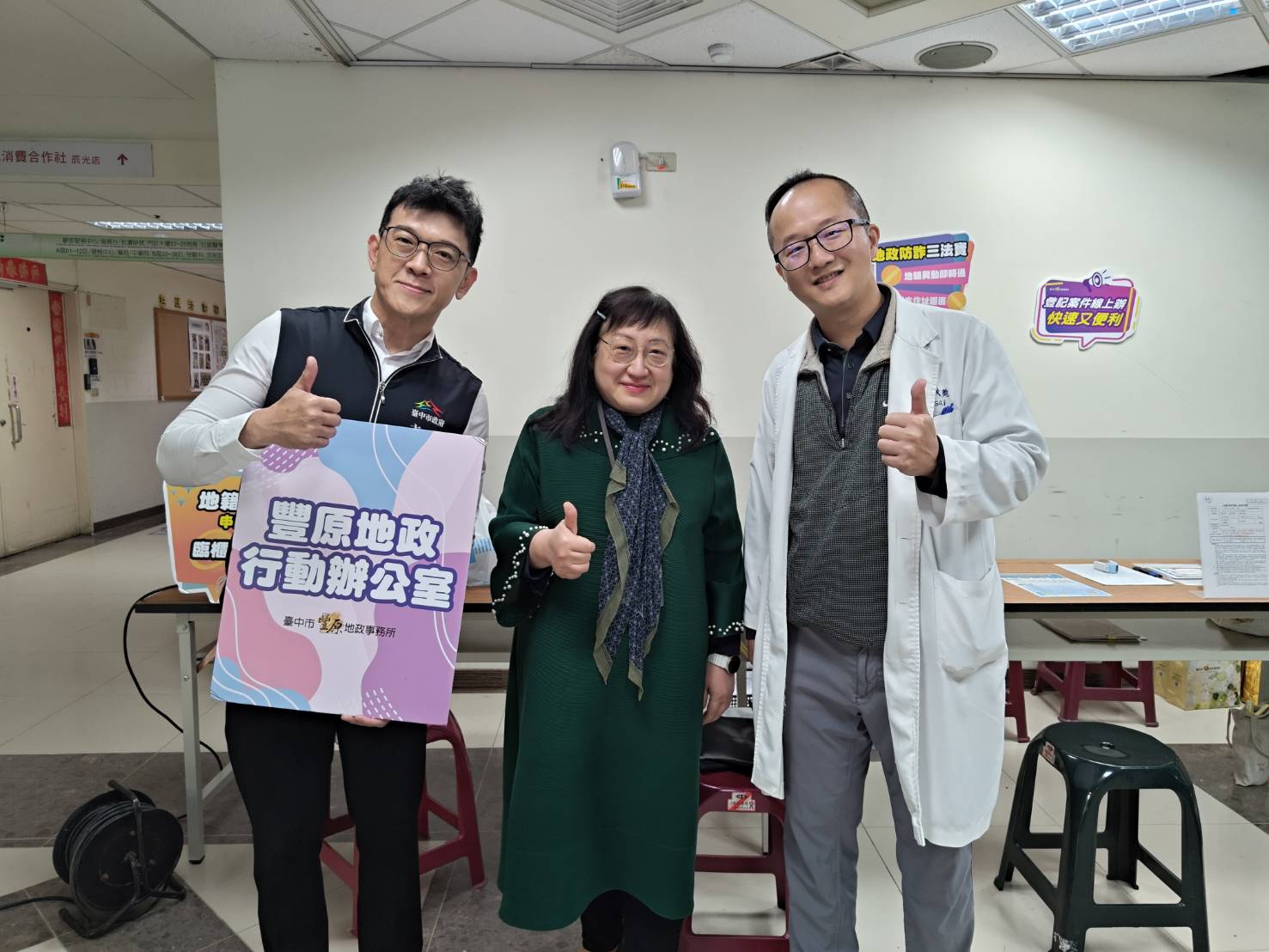 為提升民眾不動產權利保障意識,強化防詐與產權安全機制,台中市豐原地政事務所跨域結合轄區大型醫院設置駐點服務台,受理「地籍異動即時通」申辦並加強宣導,讓醫護人員及民眾無須請假往返地所,即可就近申辦,隨時掌握不動產權利變動資訊,落實「健康醫院顧、房產地政護」的雙重守護。