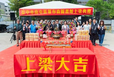 台中市閱讀建設再添重要里程碑!南屯區「羅布森圖書館」今(26)日舉行上梁典禮,由台中市政府秘書長黃崇典代表市長出席,並向羅布森股份有限公司董事長汪世旭、麗明營造及建築團隊表達感謝。在公私協力推動下,攜手打造高綠覆率生態圖書館,融合綠意與人文、結合生態美學與多元機能,成為市民期待的全新閱讀地標。