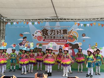 舞台活動則由國光國小鼓藝社熱力開場,接續由忠孝國小弦樂團、樂業國小附幼舞蹈表演及國光國小舞蹈社與台中領鮮吉祥物小鮮共同演出,精彩表演為現場注入活力,也吸引眾多親子駐足欣賞。