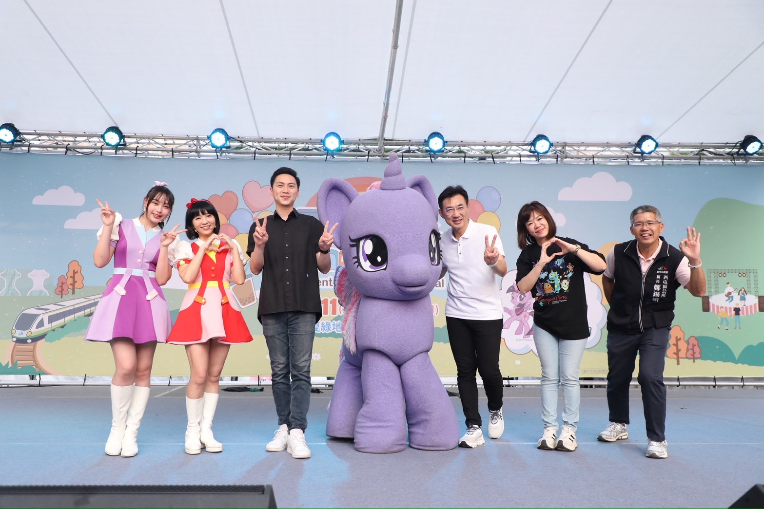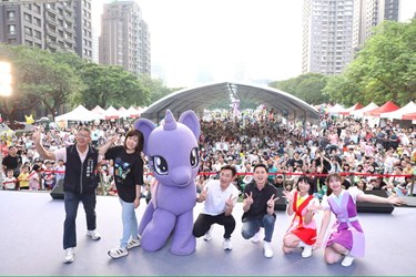 台中寶貝們期待的年度親子盛會「2026台中親子音樂季」今(11)日在夏綠地公園熱鬧登場!新聞局長欒治誼與YOYO家族及超人氣角色「彩虹小馬」共同揭開序幕,現場共吸引超過8,000人次參與,在滿滿歡笑聲中揭開序幕。今年活動規格「超進化」,首度邀請全球巨星「彩虹小馬」跨界助陣,在草坪上矗立起全台首座 5 公尺高的「紫悅」大型氣偶,讓路過的民眾直呼:「太萌、太好拍!」