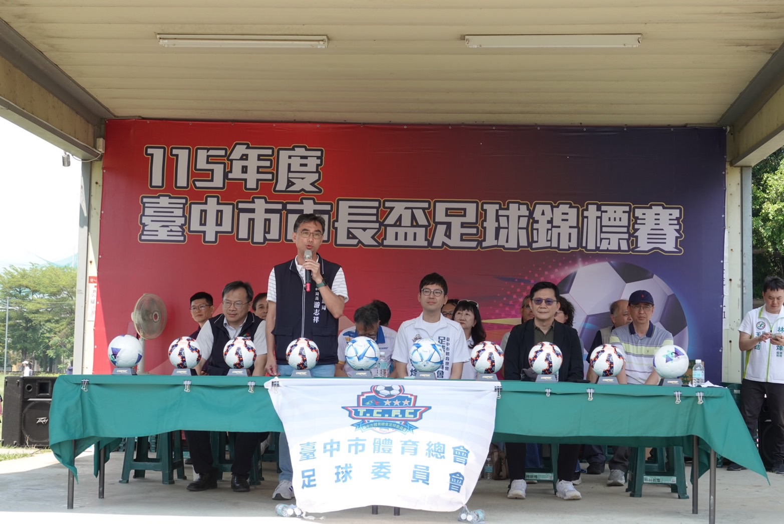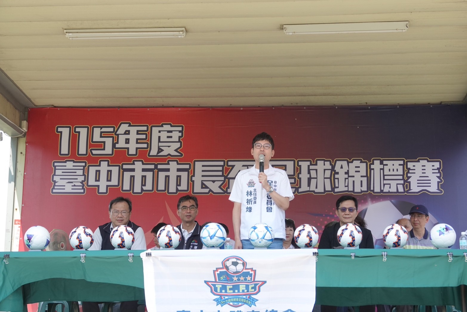 今(12)日台中市政府運動局長游志祥代表市長盧秀燕出席賽事開幕,首先肯定所有參賽隊伍共同為足球運動扎根熱情參與,同時感謝各界支持台中足球運動發展,未來將持續攜手各界培育更多足球運動人才。