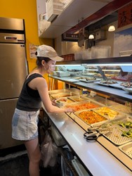 秘書處說明,員工餐廳各進駐廠商發揮創意,以不同方式落實惜食精神,其中伍捌玖燒臘店透過食材全利用,將骨架熬製成湯品後免費供應給用餐同仁;阿鎮現榨果汁堅持果汁現點現打、四海遊龍採取每日現包鍋貼,以精準控管份量;日風小棧小吃部依來客量不定時提供加菜、5元折扣或將餐點分享給鄰近櫃位廠商;福齋精緻素食則將剩餘菜餚免費分送給自家員工,共同落實廚餘減量。