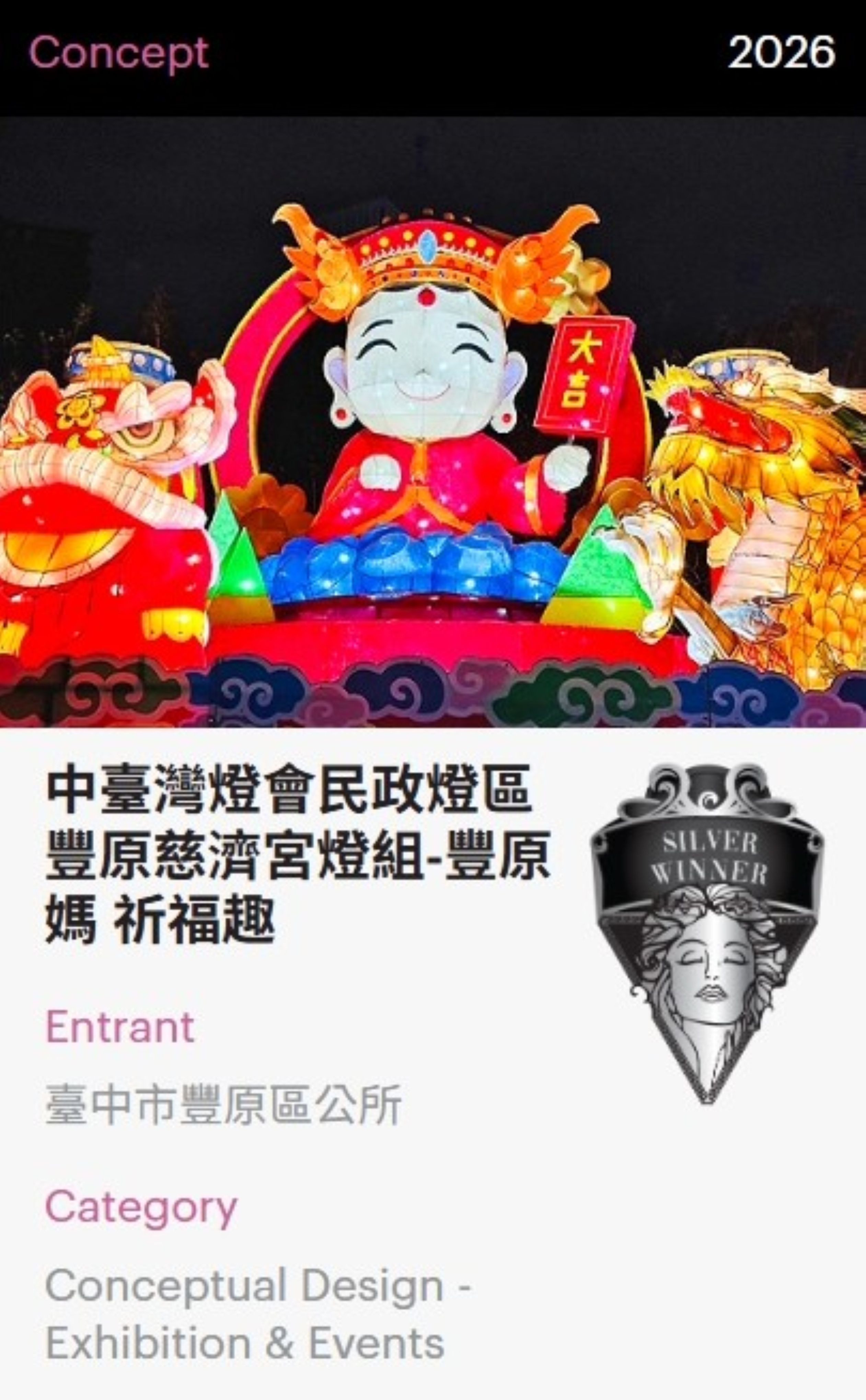 民政局強調,此次獲獎不僅為中台灣燈會再添國際榮耀,更是對台中城市文化力與設計力的最佳肯定。未來市府將持續深化地方文化特色,結合創意策展與節慶活動,讓宗教文化、城市美學與市民生活緊密連結,持續提升台中國際能見度,向世界展現幸福城市的獨特魅力。(4/16*16)*民政局