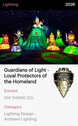 吳局長進一步表示,除「光環境燈組」勇奪金獎外,其餘4組宮廟主題燈組也抱回1金3銀佳績,充分展現「幸福祈願村」燈區在文化策展與燈藝創作上的豐厚實力。其中,大里七將軍廟「忠義護鄉土」燈組榮獲「照明設計類」金獎,以Q版七將軍爺造型結合精湛燈藝工法,生動傳遞守護鄉里的忠義精神,讓在地信仰文化以創新形式精彩躍上國際舞台。