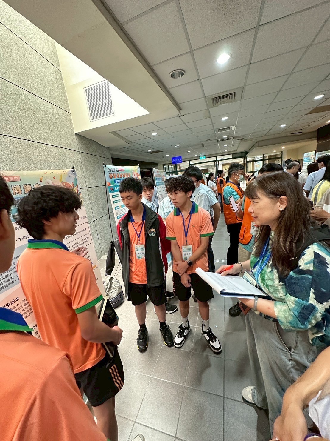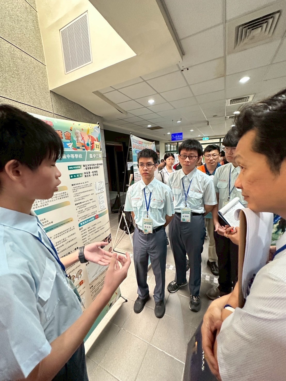 今日活動現場亮點十足!華盛頓高中李宥蓁以「心心相印」為題,分享心臟解剖實作與急救訓練的科學探究旅程,展現深厚的職涯潛力;台中女中黃薏璇則投入AI領域,現場解析CNN模型訓練,展現優異的數位素養;興大附中林冠廷、許立揚透過手作起重機進行受力結構分析,體現工程探究精神;霧峰農工參展團隊則針對校園開放外食議題進行公民思辨,展現出對社會議題的觀察與實踐。