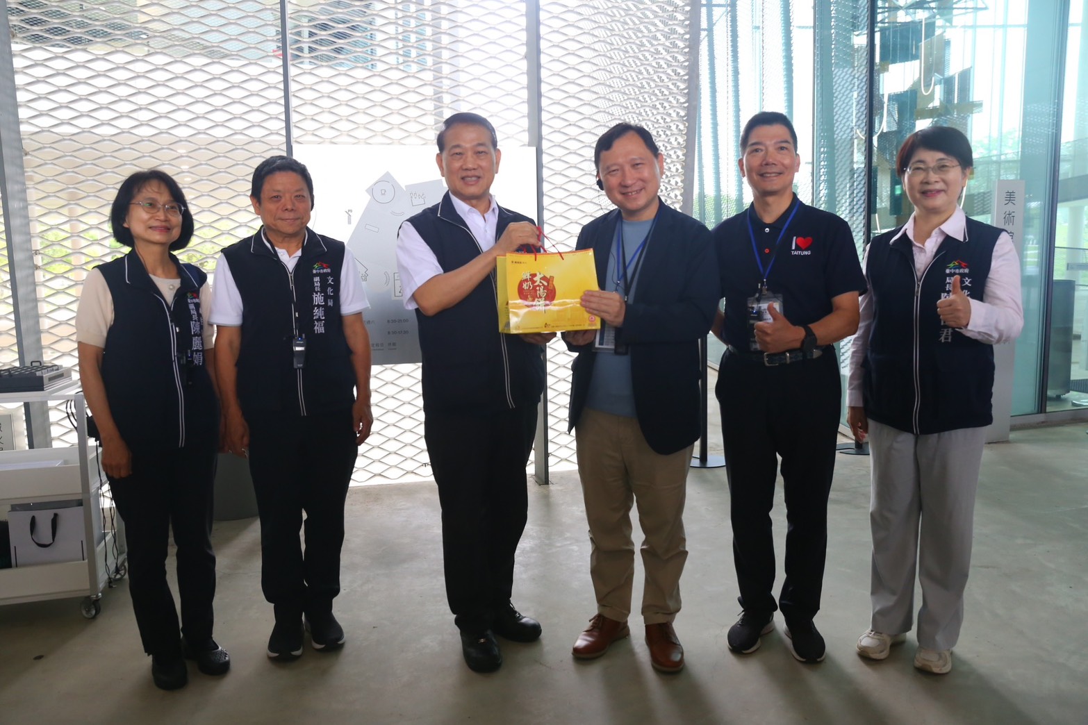 張副秘書長表示,台東在饒慶鈴縣長的帶領下,都市計畫與城市治理上展現專業,透過此次參訪,雙方得以就治理經驗進行交流,期盼未來持續深化跨縣市合作。而台中市政府近年以聯合國永續發展目標(SDGs)為施政核心,整合在地資源並推動跨域合作,逐步打造宜居且永續的城市環境;此次參訪的水湳經貿園區為台中重要發展核心之一,除台中綠美圖外,亦有國際會展中心等重大建設,未來台中巨蛋也將座落於附近,持續帶動整體發展能量。其中,由日本建築團隊SANAA事務所設計的台中綠美圖,透過建築量體抬升引入自然通風與採光,並納入節能與綠建築理念,更展現台中推動日本建築團隊永續城市與氣候行動的具體成果。