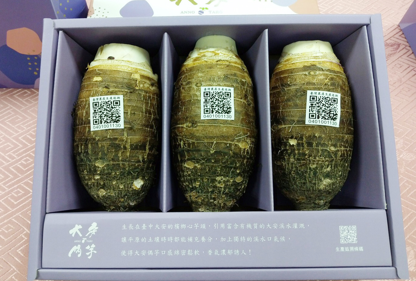 這次農會所推出的大安偶芋系列禮盒,可分為2顆、3顆、6顆芋頭及240克重的芋角等不同選擇,而且均有生產履歷可查詢芋頭的種植歷程及生產農民等資訊,讓消費者買得更安心,歡迎民眾多加選購,支持台中在地芋頭,採購資訊可洽大安區農會(04)2671-2229分機42陳小姐)或至大安區農會展售中心購買。