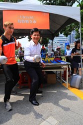 「台中荷蘭日」今(7)日在市民廣場熱鬧登場,林市長出席與民眾同樂,不僅發送米飛兔小玩偶給小朋友,並與荷蘭西洋擊劍選手David van Nunen互動擊劍。包括副秘書長郭坤明、文化局副局長施純福、荷蘭貿易暨投資辦事處代表紀維德、荷蘭烏特勒支市(Utrecht)經發局長胡茲克馬卡斯(Albert Hutshemaekers)等人都到場共襄盛舉。