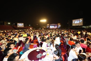 新聞局指出,今晚「千人辦桌」區由名廚阿基師率領五星級外燴團隊精心料理「花香開味迎賓集」、「芙蓉睡蓮香菇鴨」、「花豔玉排扣白玉」、「霸王花果燉雞湯」等10道佳餚,共有90桌幸運預定成功的民眾及10桌弱勢團體一起品嘗豐盛的菜餚。