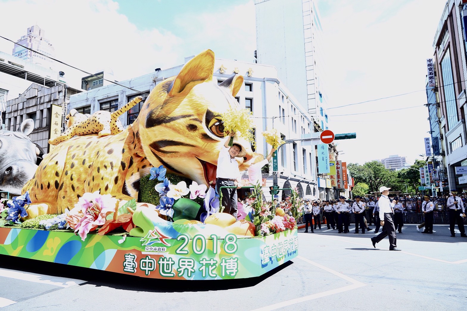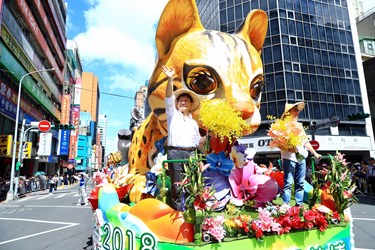 兩車相連的台中石虎花車是全場最大的一台,一出場就成為嘉年華的焦點,民眾看了直呼「好萌!」、「超可愛!」市長林佳龍與市府新聞局長卓冠廷特地北上力挺國慶花車遊行,頭戴斗笠、手持鮮黃色文心蘭花束,並肩站在花車上頻頻對民眾揮手,氣氛歡樂。