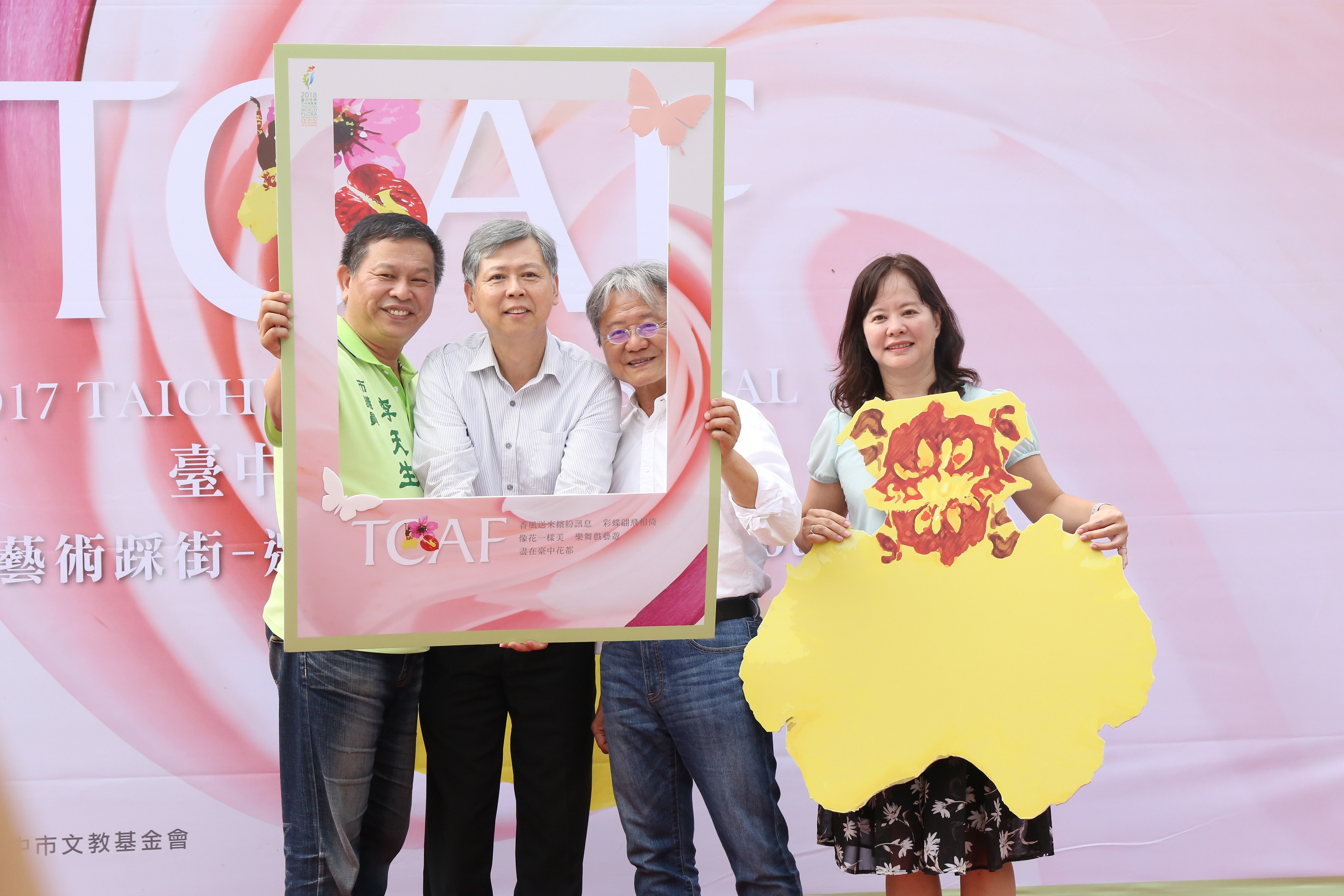 文化局今(12)日在霧峰以文圖書館前廣場舉辦台中花都藝術季「花現藝術踩街」記者會,李副秘書長在文化局長王志誠的陪同下出席,市議員李天生也到場關心,立委何欣純、顏寬恒、市議員張芬郁等人也派代表到場;除有瓊瑢舞蹈團舞者手持蓮花展現舞姿,也提供「我是花仙子」AR互動體驗,使用者只要用手機下載APP,並掃瞄台中花都藝術季識別標誌,即可用手機拍攝搭配花都藝術季特製相框及花朵服飾的照片,為活動增添亮點,氣氛熱鬧。