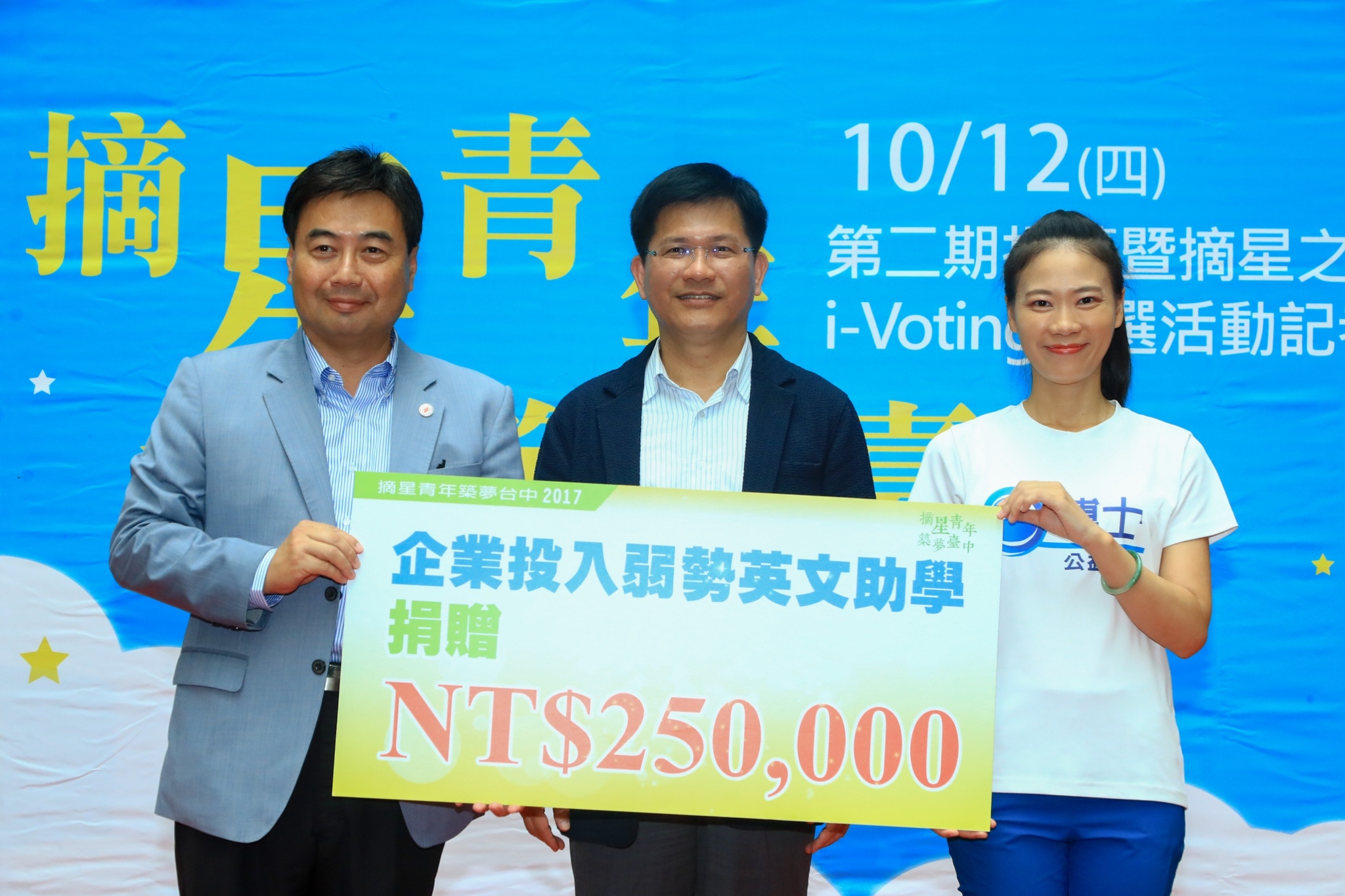 市府勞工局今日於台灣大道市政大樓舉行「摘星計畫第二期招募暨摘星之光i-Voting票選活動」記者會,林市長在勞工局長黃荷婷陪同下出席,宣布第二期摘星青年召募與第一期摘星之光i-Voting票選活動開跑,也見證中華民國工商建設研究會中區聯誼會長陳政鴻捐贈25萬元,表揚熱心投入英文教學的摘星青年廖欣怡,肯定其幫助弱勢的精神。市議員張雅旻,以及市議員翁美春、張芬郁、陳政顯服務處代表也到場共襄盛舉。