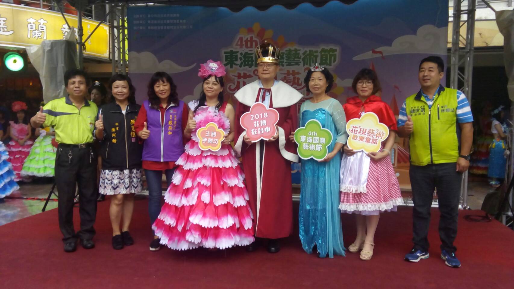 一年一度的台中市東海國際藝術節今(14)日在東海藝術街科比意廣場舉辦,今年以「花現藝術 歡樂童話」為主題,邀請店家以花與童話風格變裝走秀,現場也由東海大學學生於藝術街商圈內創作造景藝術,拍照打卡還送限量DIY彩繪手拿扇,並推出消費滿額換禮品、手作課程等活動,吸引許多民眾同樂。