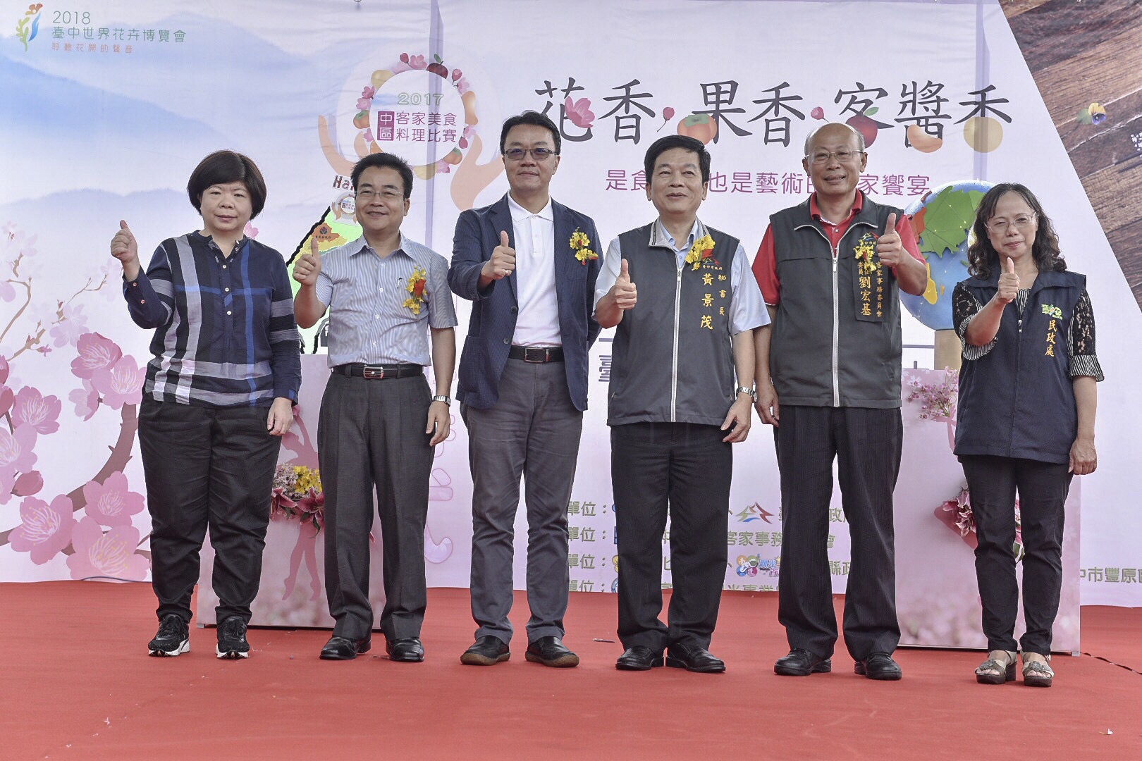 為「2018台中世界花卉博覽會」暖身,中區客家美食料理比賽以「花香、果香、客醬香」為料理主題,來自中彰投苗20組隊伍齊聚陽明市政大樓展開競賽,市府秘書長黃景茂、中央客家委員會產業經濟處副處長陳瑞榮、市府客委會主委劉宏基、南投縣政府文化局長林榮森、苗栗縣政府文化觀光局副局長詹彩蘋、彰化縣政府民政處原住民暨民族事務科長楊敏芳至出席為選手加油。