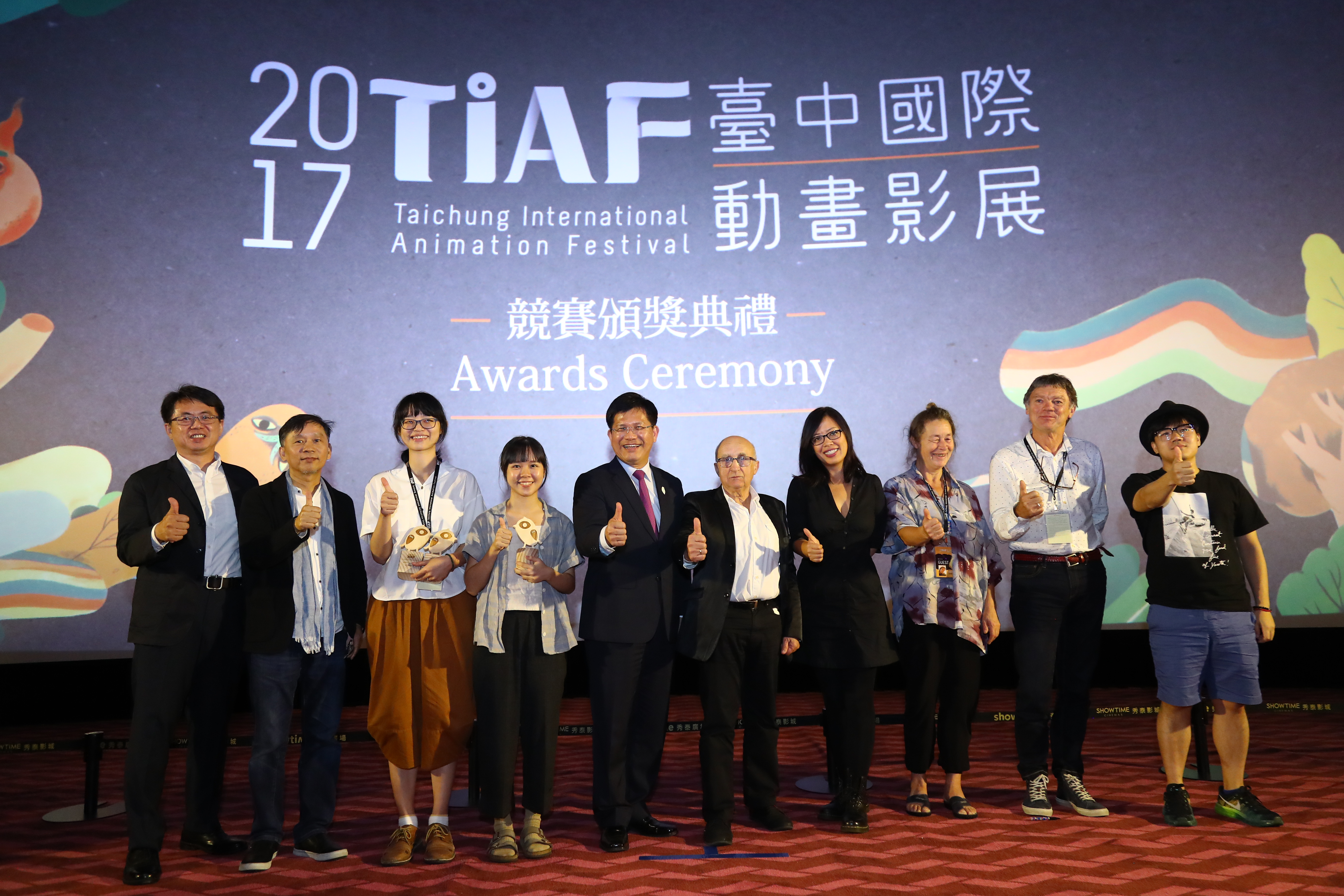 2017台中國際動畫影展今(17)日於秀泰影城站前店舉辦閉幕頒獎典禮,林市長在影視基金會執行長林盈志、動畫影展節目總監石昌杰,以及新聞局主秘林尚賢等人陪同下出席頒獎。林市長感謝來自35個國家地區,共143部入圍影片共同參展,讓台中成為國際動畫城市邁進一大步。