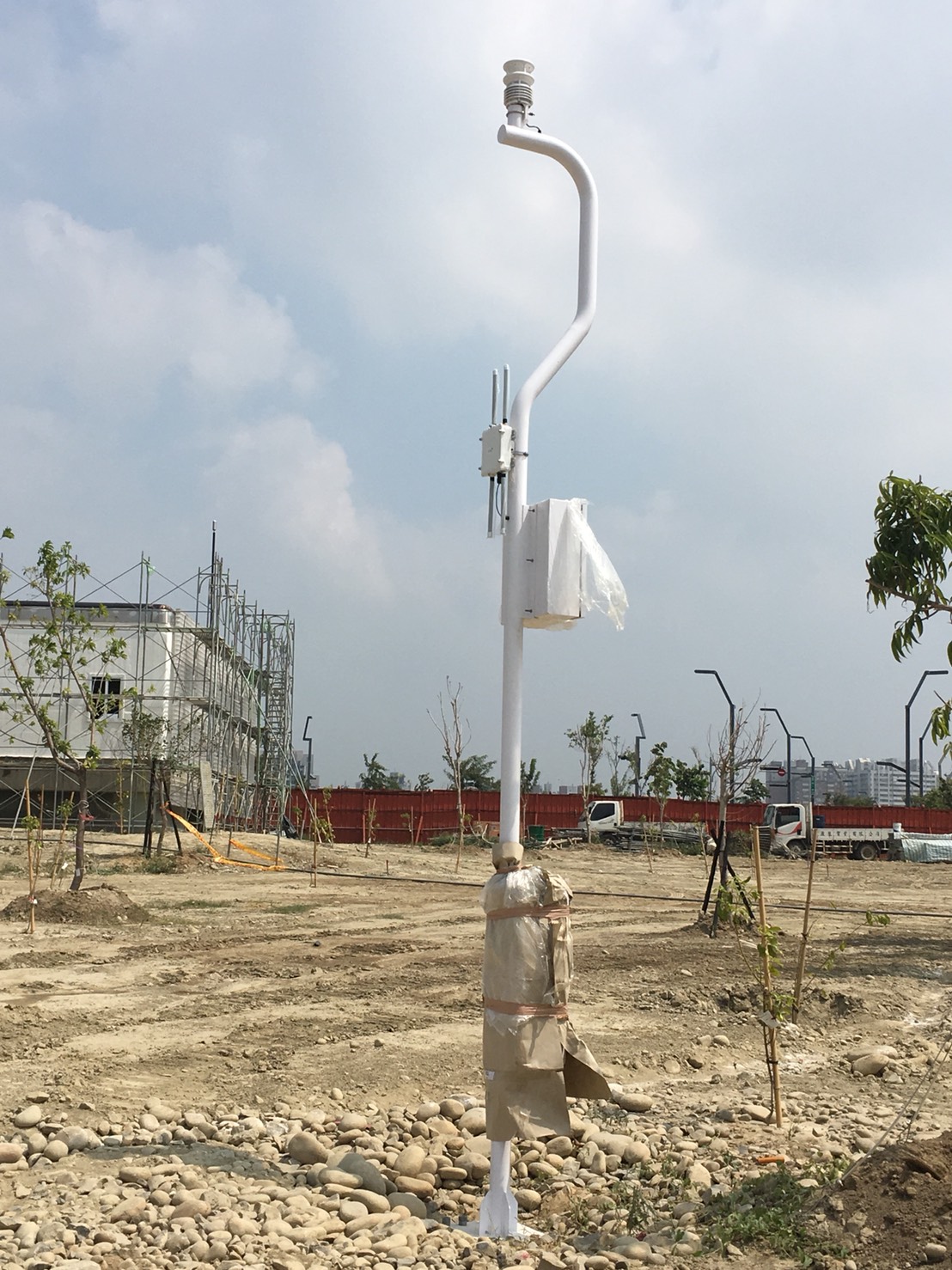智慧共桿主要分為三種類型,第一類為WIFI市民智慧感測立柱,是中央公園智慧設施的核心設備。依功能分為簡易型及多功能型,簡易型可感測溫度、濕度、風速、風向等,有91支;多功能型則可以感測溫度、濕度、風速、風向、一氧化氮、二氧化氮、臭氧、一氧化硫、粉塵顆粒PM2.5、PM10及噪音值等,有30支。