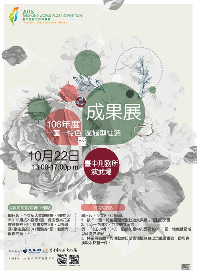 1.《台中市西區106年度一區一特色暨區域型社造成果展》10/22活動熱鬧登場!