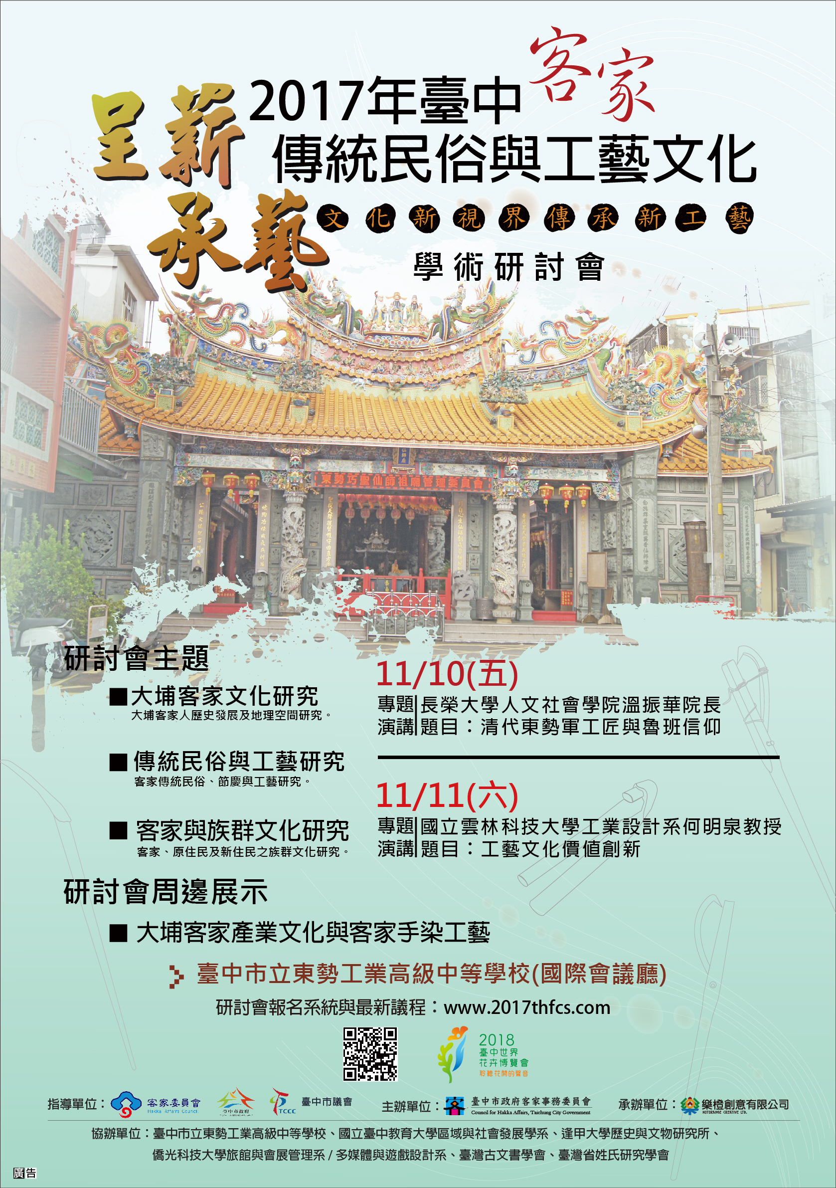 1.「2017年台中客家傳統民俗與工藝文化學術研討會」熱烈開放報名中!