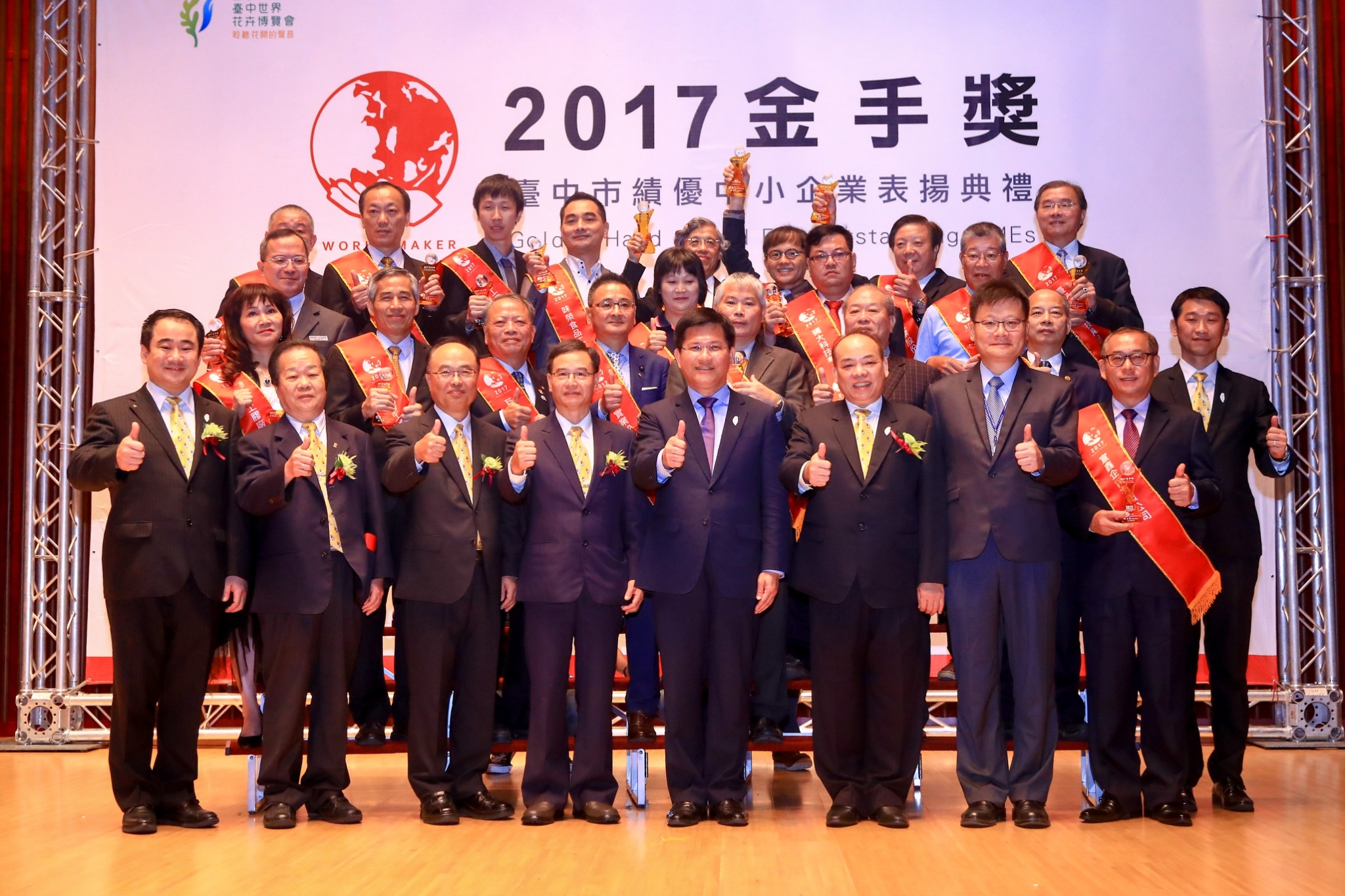 台中市工商發展投資策進會與金手獎得獎廠商協進會合辦的第十六屆台中市「金手獎」選拔結果揭曉,20家在地績優中小企業獲獎,今(21)並由市長林佳龍頒獎肯定其對台中經濟的貢獻。林市長表示,台中市是製造業最重要的群聚基地,市府推出許多配套措施支持在地企業,包括興建會展中心及提供產業發展需要的土地、人才、技術、資金等,期望成為讓企業持續打拼而無後顧之憂的堅強後盾。