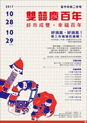 「台中第二市場雙囍慶百年-好市成雙‧幸福百年活動」也將在週末展開,連續2天的古物市集匯集約40攤的特色古董雜貨、懷舊玩具及舊食攤車,週六(28日) 晚間6點還將播放50年代紅遍台灣的黑白電影《王哥柳哥遊台灣》,片中重現50年前當時各地著名的景點,包括:台中車站、台中公園、醉月樓酒家、台灣省議會,歡迎共襄盛舉!更多資訊可至活動網站( http://bit.ly/2zD4iU3)