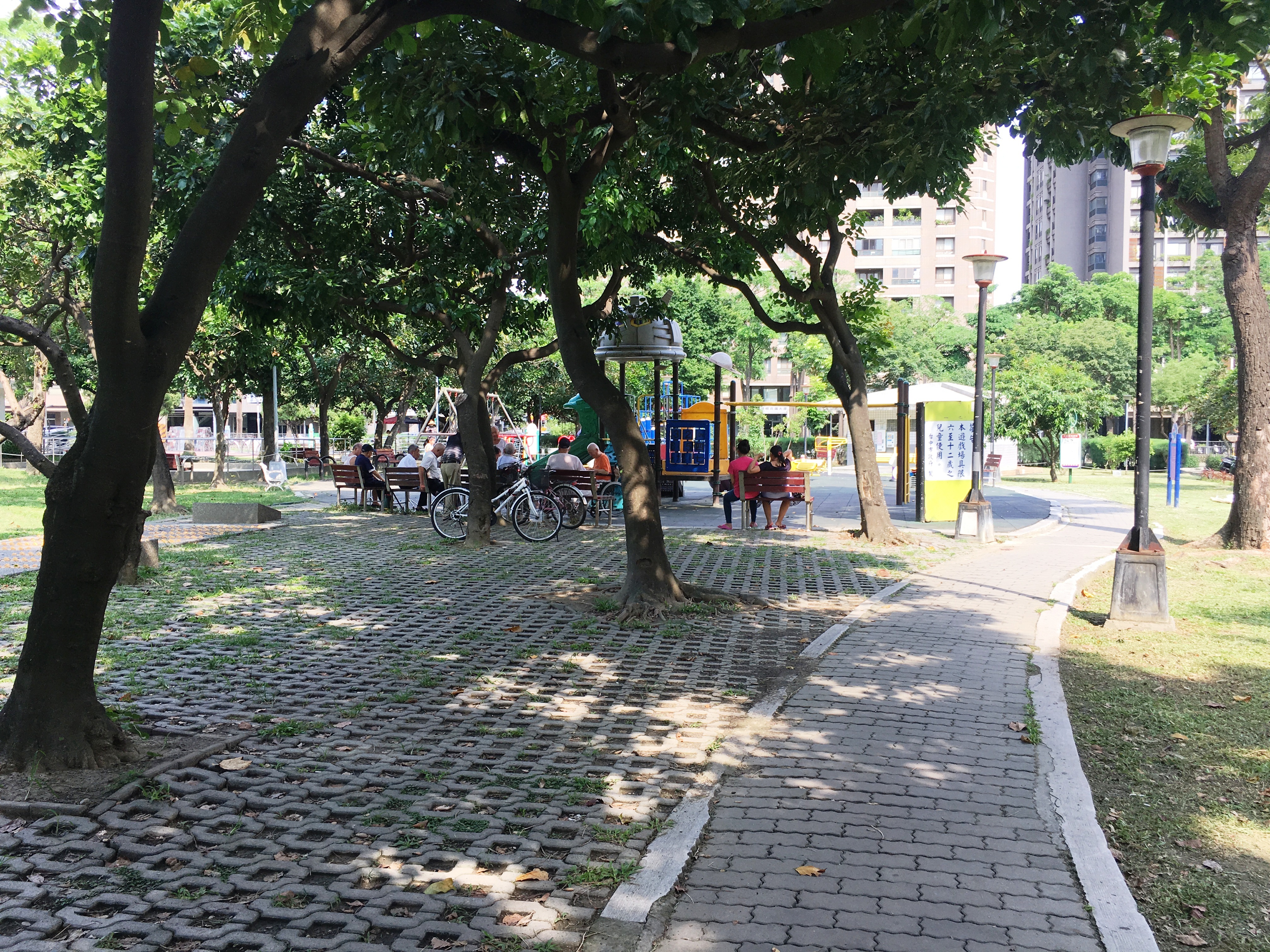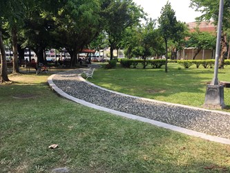這次改善工程除了將兒童遊戲場的塑膠兒童遊具移除,改設磨石子溜滑梯及沙坑外,也將改善現有大樹下視線死角,新增3座高齡用體健設備,將既有設施重新配置,成為樹下體健設施區;另外,也將一併移除老舊設施,保留大片草地,提供兒童充足運動空間。