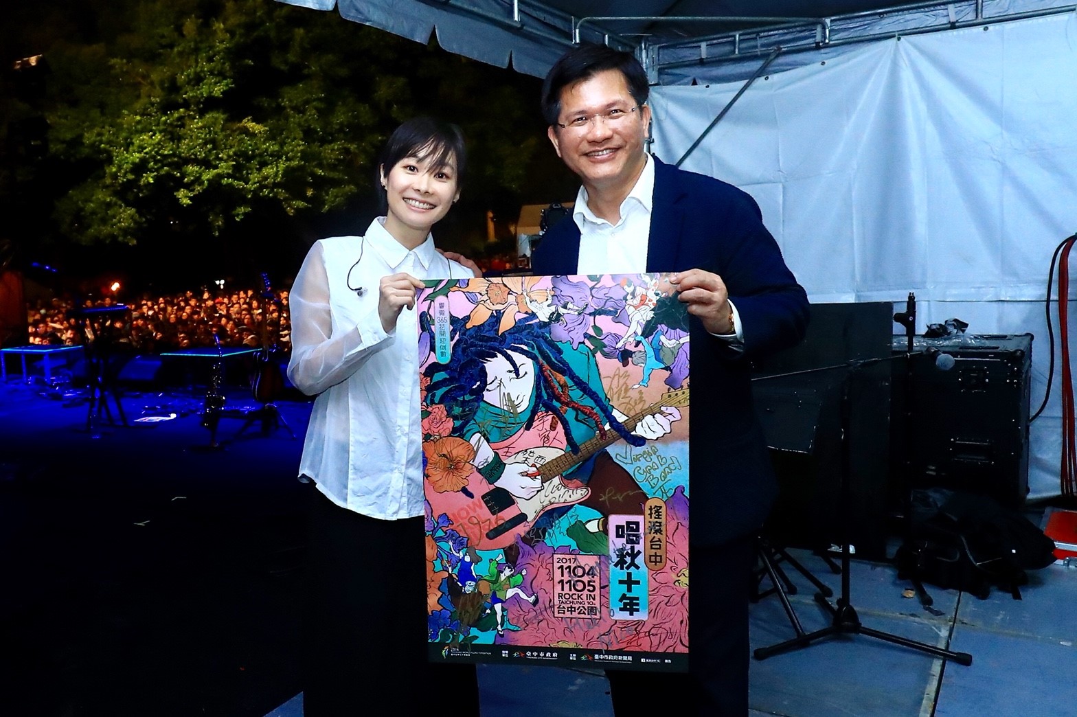 林市長事後表示,聽到許多年輕朋友告訴他,今年的搖滾台中辦得很精彩,廣大的樂迷從各地、甚至海外慕名而來;還有幾位老友跟他說,他們特別來聽子女迷的樂團,雖然「有聽沒有懂」,但彷彿經歷了一場奇幻旅程;聽到這樣的回饋,讓他感到欣慰。林市長感謝每一組演出樂團及表演者、每一位台前幕後工作人員對搖滾台中的投入,並與樂迷們相約明年再見。(11/6*17)*新聞局
