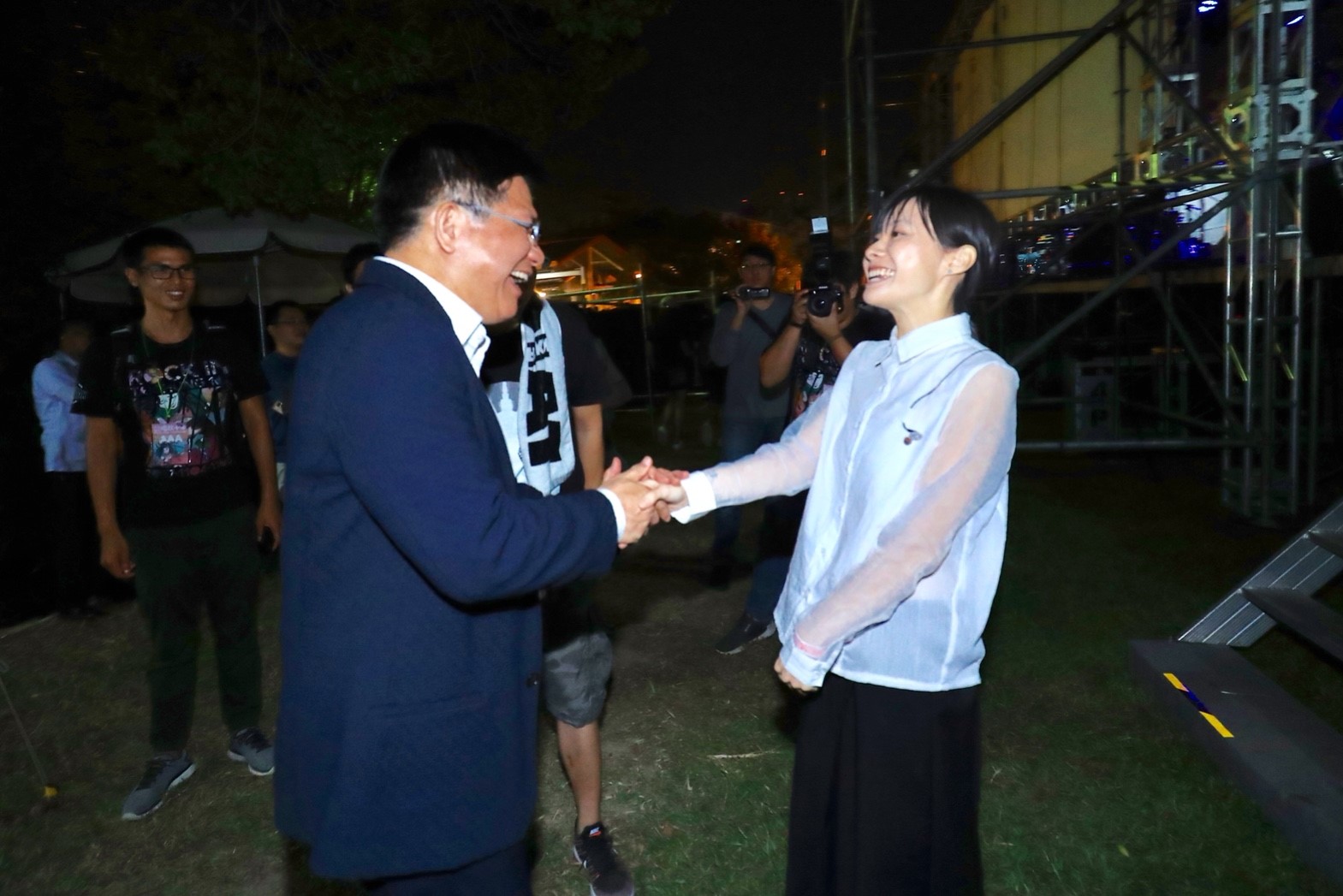 鄭宜農演出的時候,還在特別CUE在台下看她表演的林市長,她說,今年「搖滾台中」超棒,場地漂亮、人超多,謝謝市長讓許多好音樂及樂團、歌手被更多人聽見;鄭宜農並藉觀眾們的掌聲感謝市府團隊。觀眾們也紛紛拿起手機與市長自拍,認同市府籌辦這場音樂饗宴。