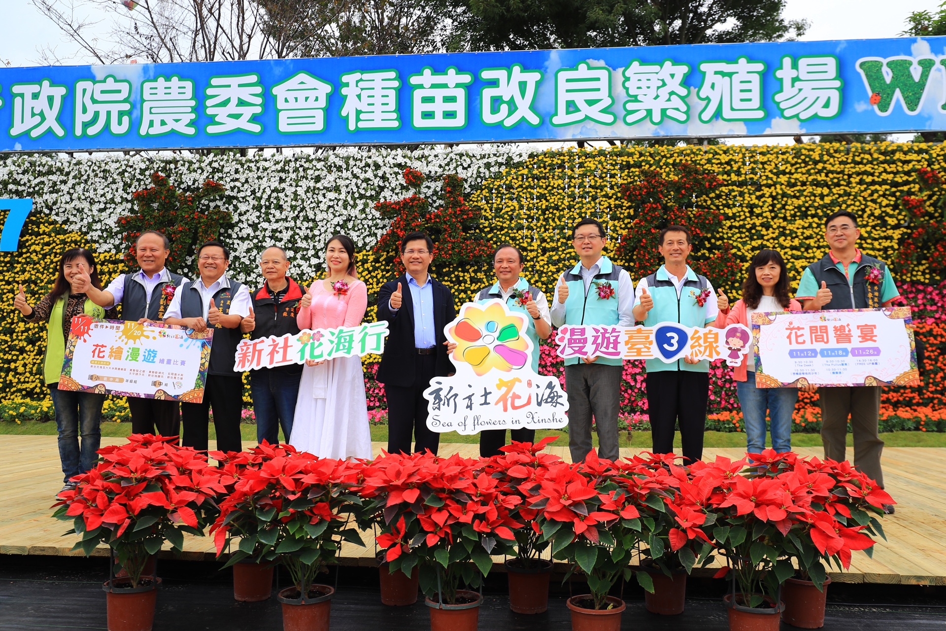 林市長表示,新社花海在農委會主委林聰賢的領導下,這次重新定位結合新社慢城及浪漫台三線,提供精緻的深度旅遊;台中市明年將舉辦世界花卉博覽會,盼結合新社花海,並從此處啟動浪漫台三線每年四季的花海活動。