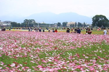 2017新社花海今(11)日開幕,以「新社花海行 漫遊台三線」為主題,轉型30公頃花海回歸自然景觀,完全沒有任何人工建物,其中15公頃的花海景觀區,以「大地桌布」與「可食地景」為意象主軸,展現農耕與生態綠化的美好平衡,以及由新社生產的水果製成的立體綠雕裝置,活動將展至11月26日。「天然的最好!」市長林佳龍表示,今年新社花海活動重新定位,結合新社慢城及浪漫台三線,提供精緻的深度旅遊,邀請大家共襄盛舉。