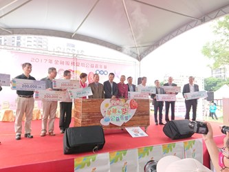 林副市長表示,台灣金融業一向熱心公益,今年台中場的捐款是歷年來單場最高,捐款金額高達新台幣200萬元分別贈與給善水國民中小學及惠明盲童育幼院,作為建置圖書設備及設置浴室暖風乾燥機工程之用。