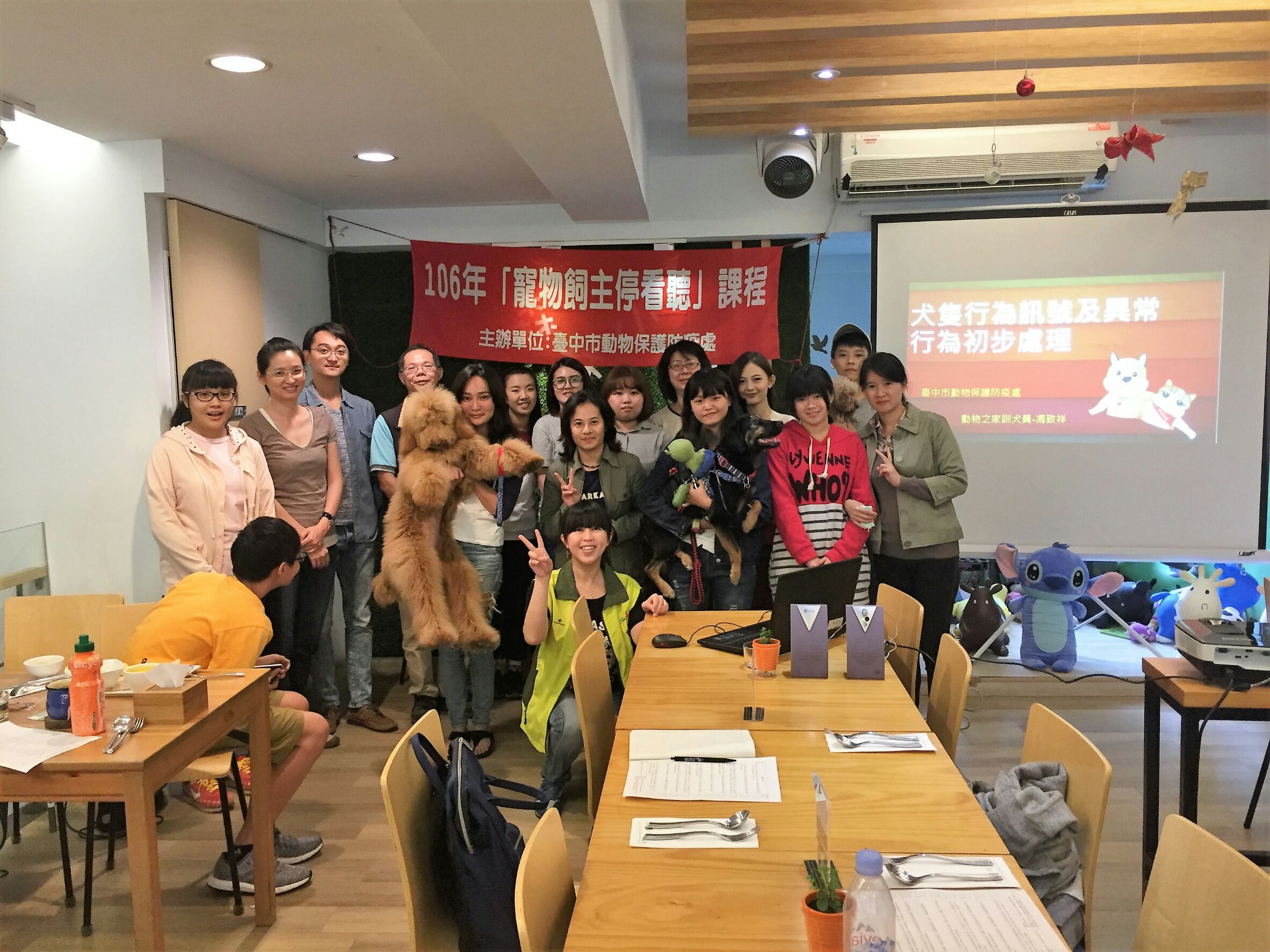 為宣導寵物飼養正確觀念,台中市政府推出「2017好主人in台中」系列活動,其中,好主人好教養之「寵物飼主停看聽」課程今年共有9場,今(11)日舉辦最終場,共有約140名飼主與準飼主們參加課程。動保處盼透過專業的獸醫師、訓犬員以及犬種專家的帶領,讓準飼主或飼主都能對自己有興趣或陪在身邊的狗狗有更深入的了解與照顧。