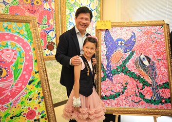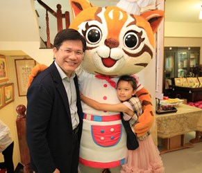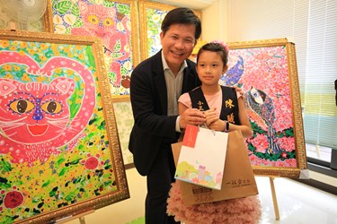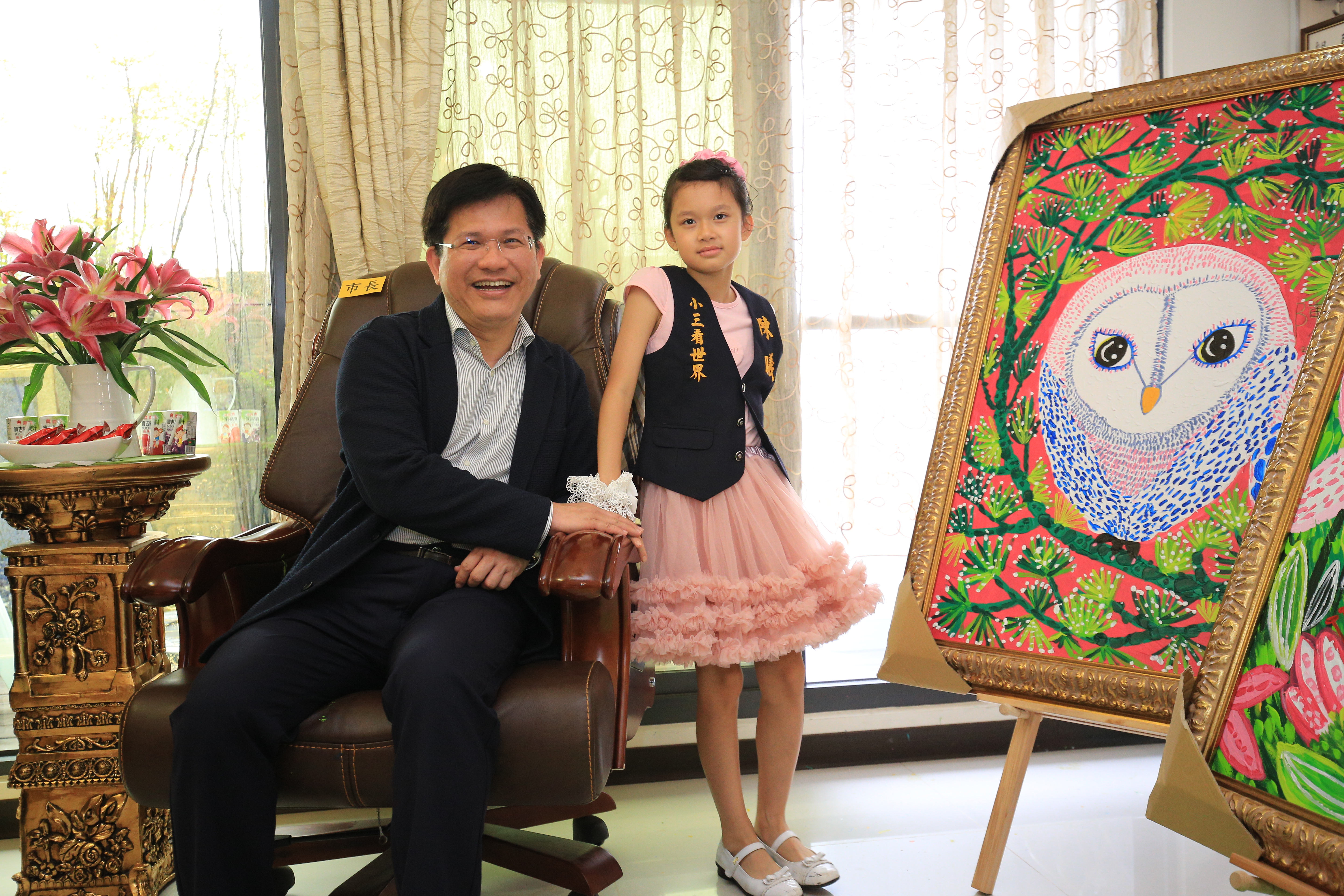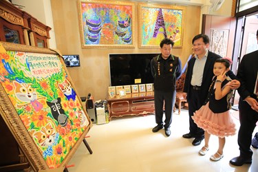 陳沙茶火鍋店老闆陳文廷的女兒陳曦擅長繪畫動物、風景等素材,曾獲香港杜菲藝術中心世界遺產奇觀繪畫比賽第2名,經立委黃國書引薦,陳曦小朋友以「台中花博吉祥物─石虎家族與馬」為主題,創作一系列畫作;林市長今日前往陳曦家中與她見面,並於現場在畫作上畫龍點睛,包括立委黃國書,花博吉祥物虎媽均出席,氣氛熱鬧溫馨。