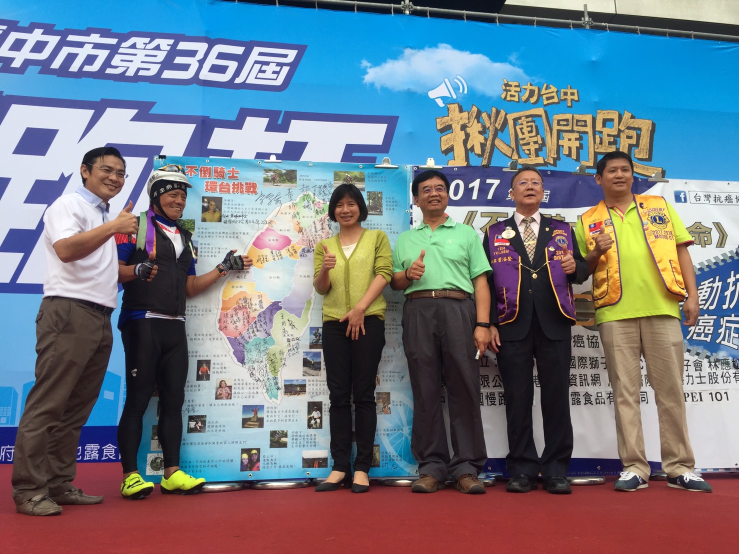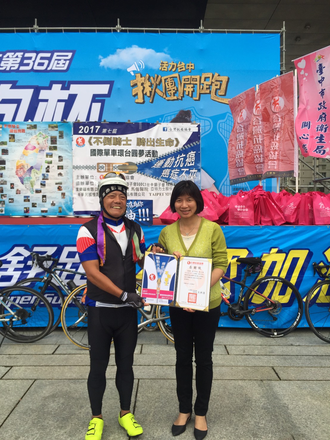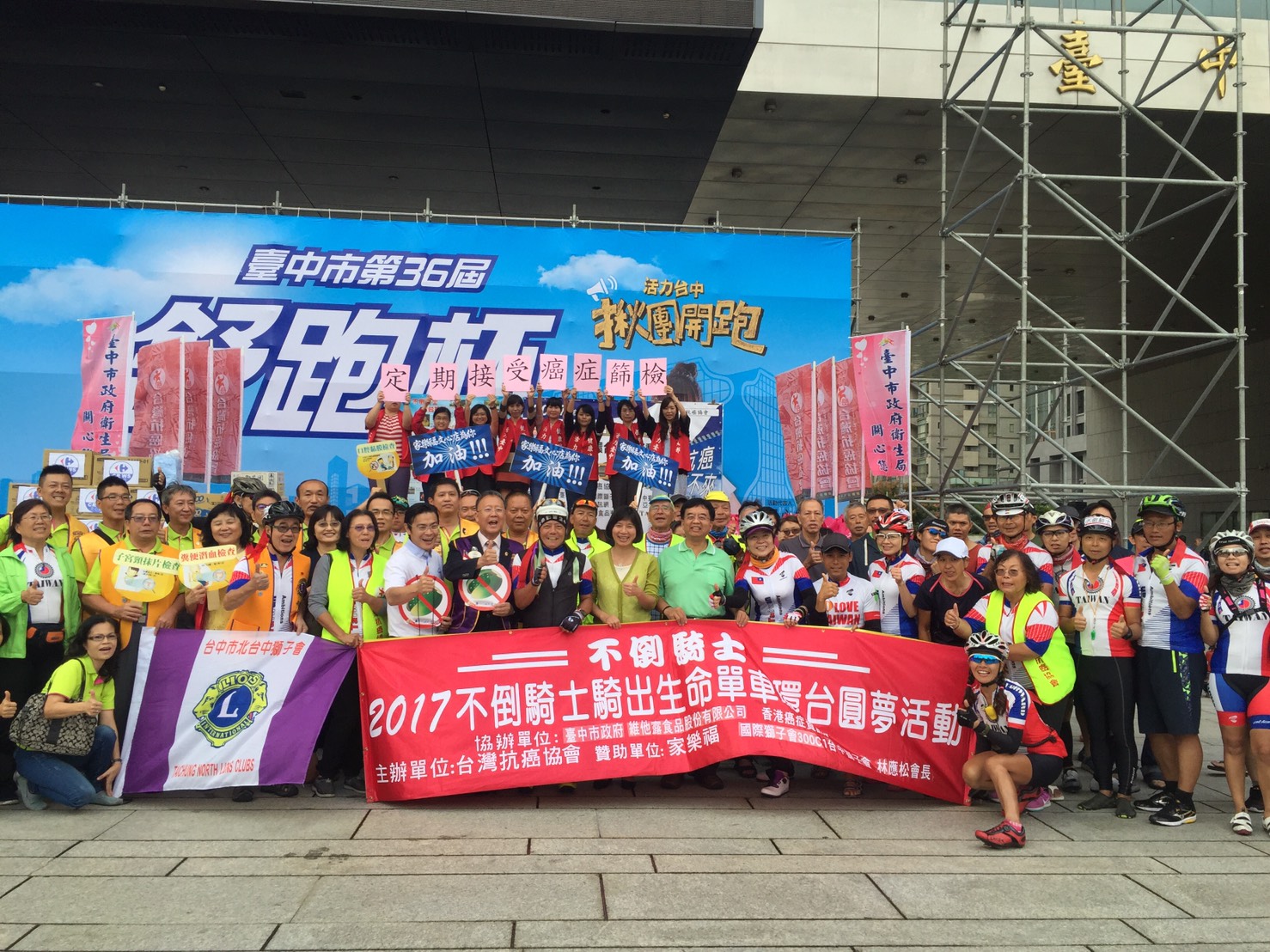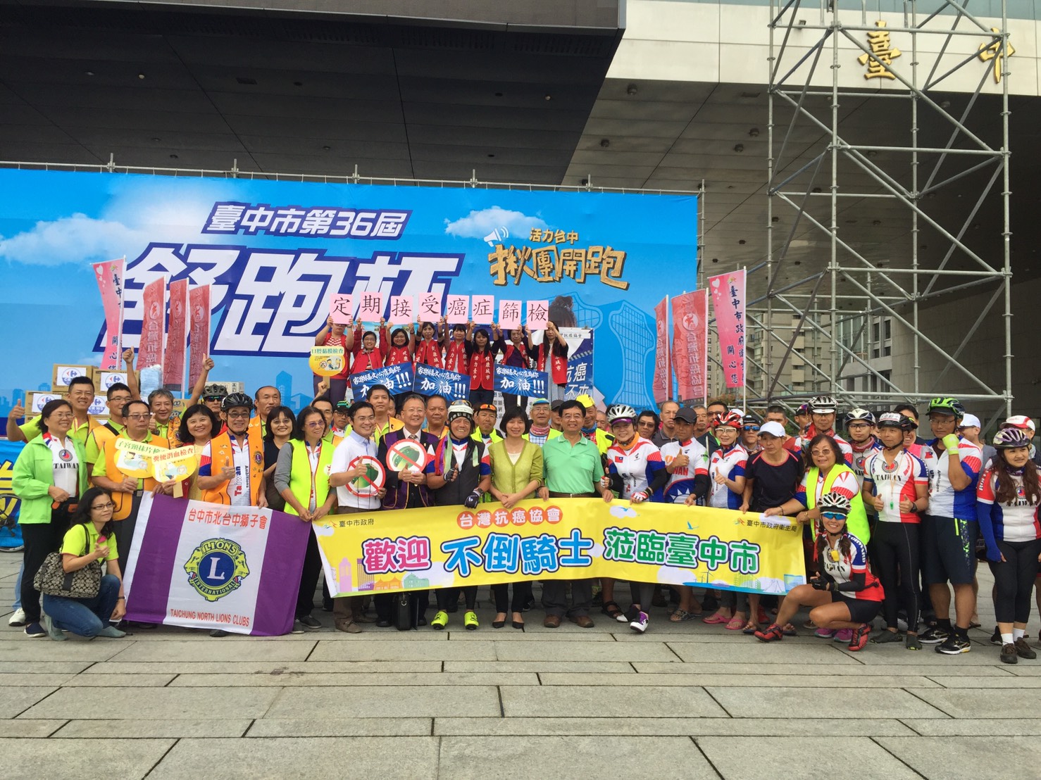 由台灣抗癌協會舉辦的單車環島挑戰於11月5日至14日期間舉辦,國內外癌友共同以單車環島繞行全台15縣市並於今日抵達台中,林副市長、衛生局簡任技正陳淑芬等人一同迎接参與環台的各地癌友,現場也邀請癌友分享對抗病魔的方式及精神,鼓勵社會大眾正視及預防癌症。