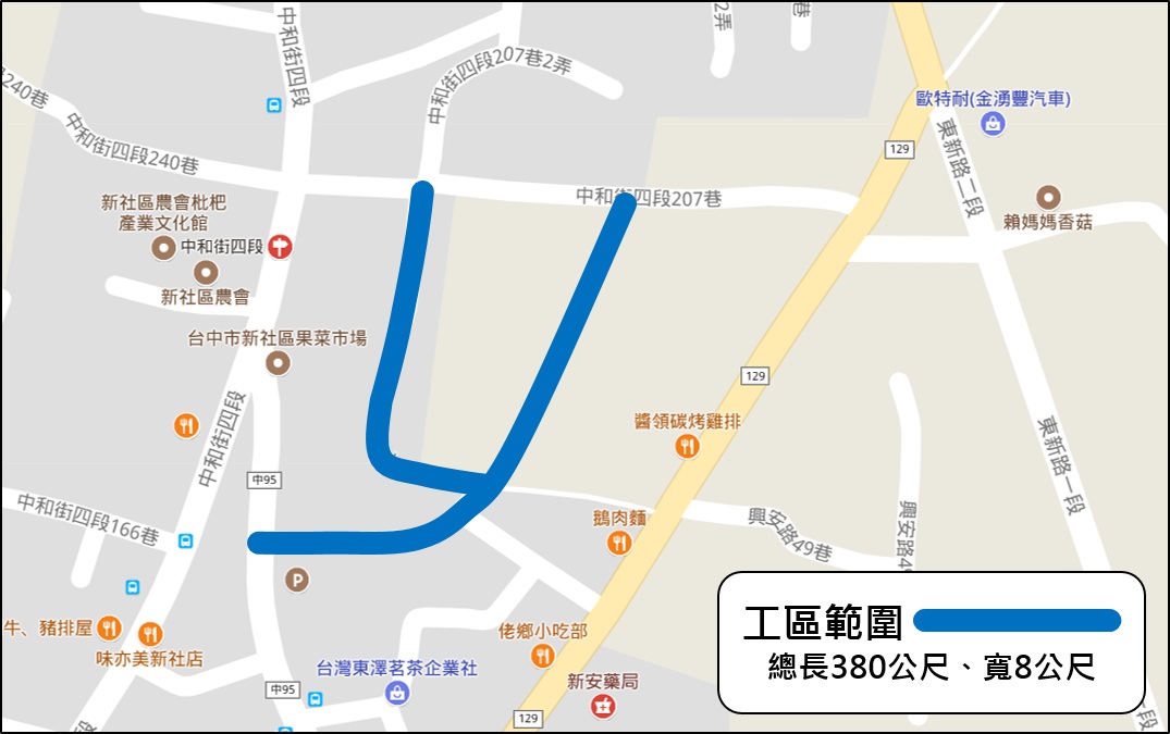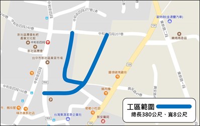 新社區新社里一帶的社區民眾,以往主要藉由狹窄的中和街四段207巷1弄及興社街三段57巷進出,南北向對外聯通道路明顯不足。建設局編列約800萬元預算辦理「新社區中和街四段207巷道路開闢工程」改善。