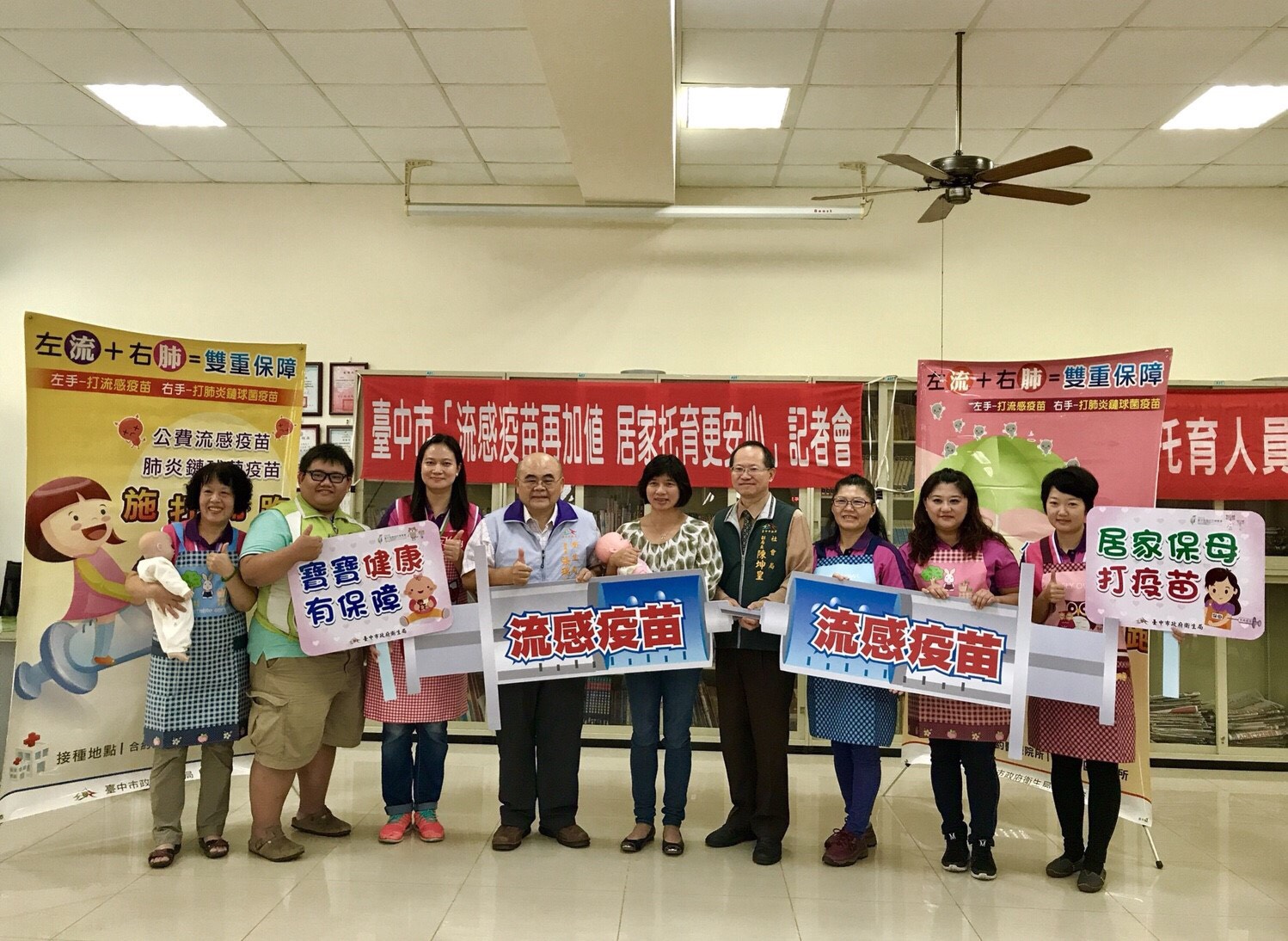 為打造居家托育健康環境,台中市政府衛生局特別編列經費自行採買流感疫苗讓居家保母免費施打,預估將有2,233人受惠。今(18)日副市長林依瑩在宣傳記者會上示範接種疫苗,邀請參與「托育一條龍」且受托2名幼童以上的保母,一同接受施打,保障自己及孩童健康。