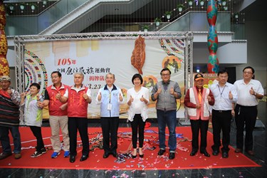全國原住民族運動會籌備處揭牌典禮今(21)日在台灣大道市政大樓舉行,市府委託在地排灣族藝術家「巴粗力木雕工作室」藝術工藝師黃國佑,為籌備處打造極具原民特色的漂流木雕牌,由副市長林依瑩、教育部體育署全民運動組長呂忠仁、市府原民會主委馬耀‧谷木、運動局主秘郭明洲、市議員洪金福、朱元宏,以及立委何欣純服務處代表,一同拉下16條印有各原民圖騰的拉繩,盛大揭牌。