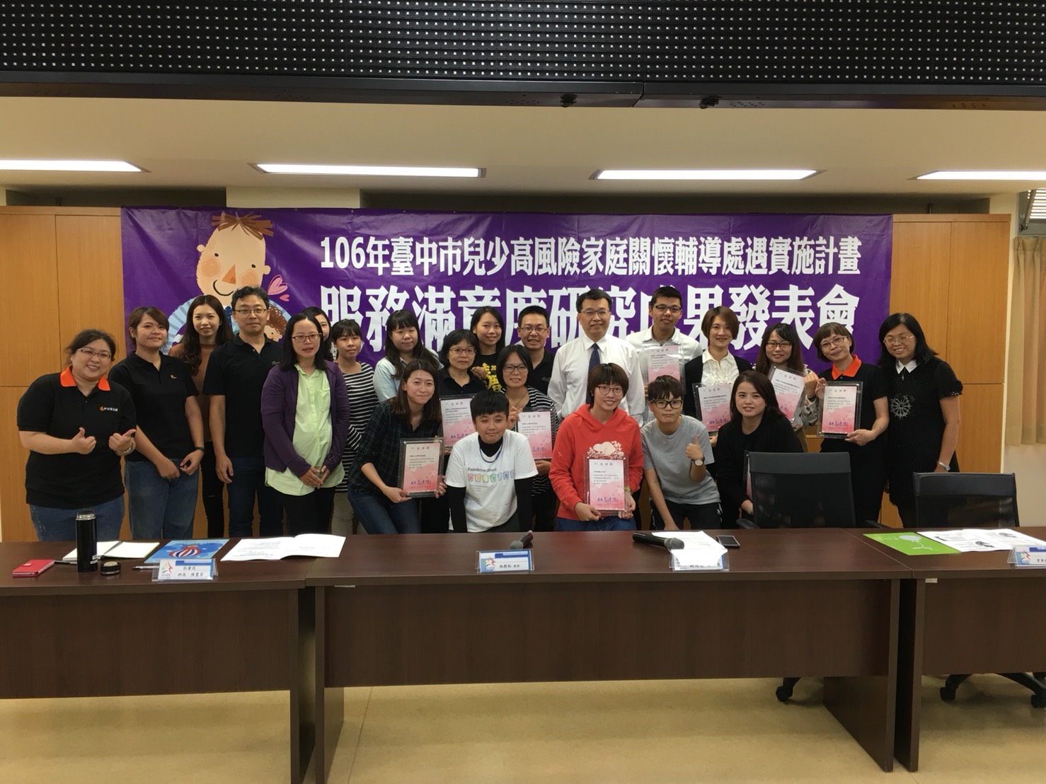 為瞭解「台中市兒少高風險家庭關懷輔導處遇服務計畫」的實施成效,台中市政府社會局委託伊甸基金會進行滿意度研究,結果顯示超過7成被服務對象都相當信任社工。社會局今(29)日舉行成果發表會,除呈現研究成果,也頒獎感謝參與台中市兒少高風險家庭的協助及服務的民間單位,以及第一線服務的督導與社工員。